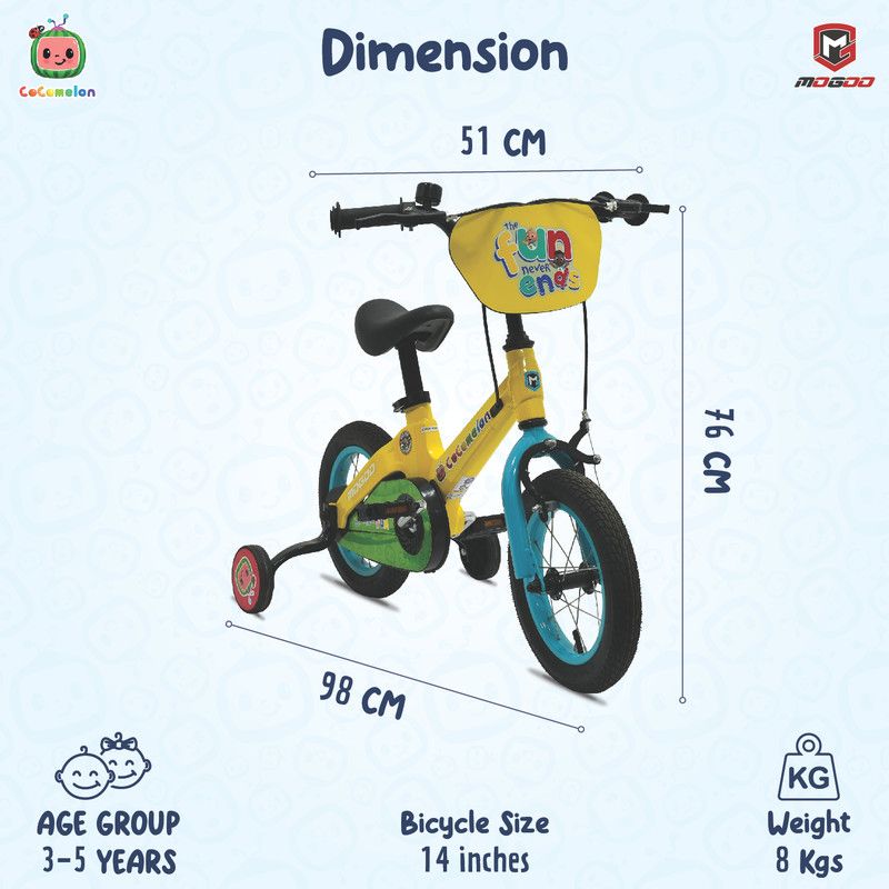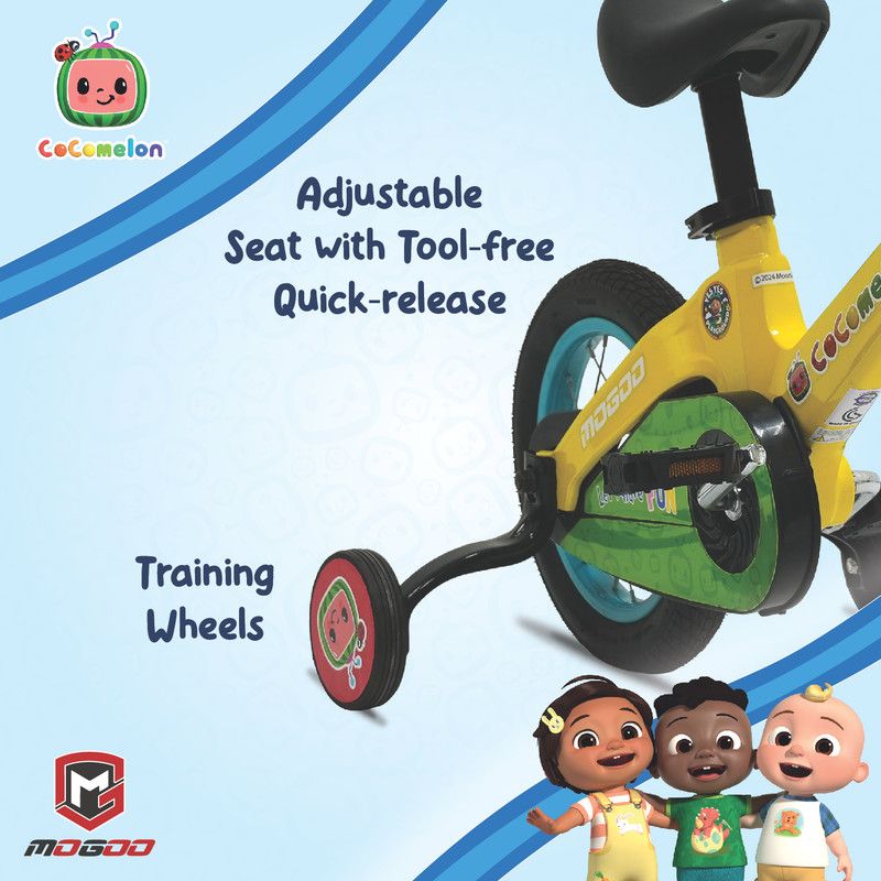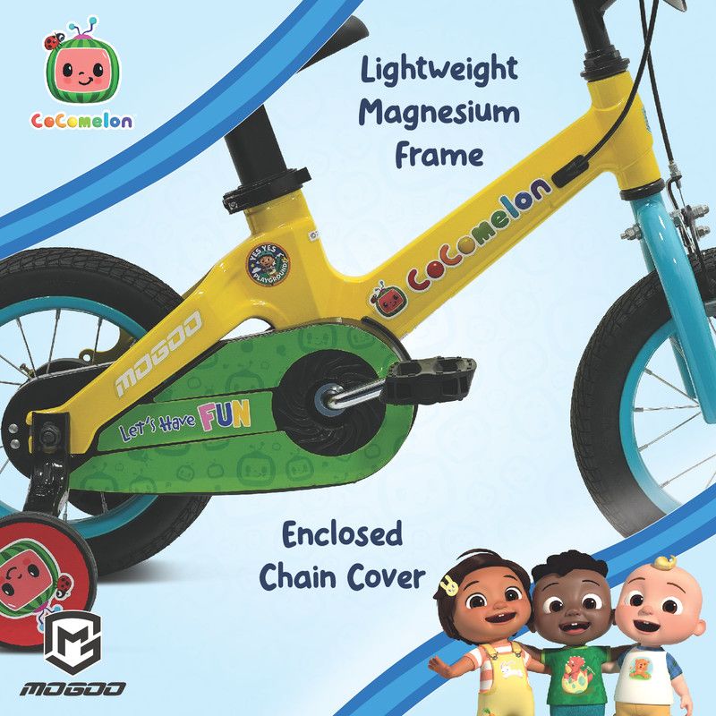 The Mogoo Cocomelon Play Magnesium Kids Bicycle is the perfect companion for your child's outdoor adventures. Designed for safety, durability, and fun, this bicycle is available in 12 and 14-inch options, making it ideal for kids in their learning stage.