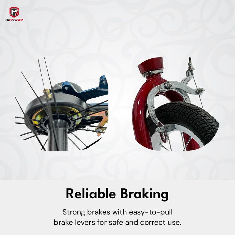 - Front and rear brakes ensure safe and controlled rides.