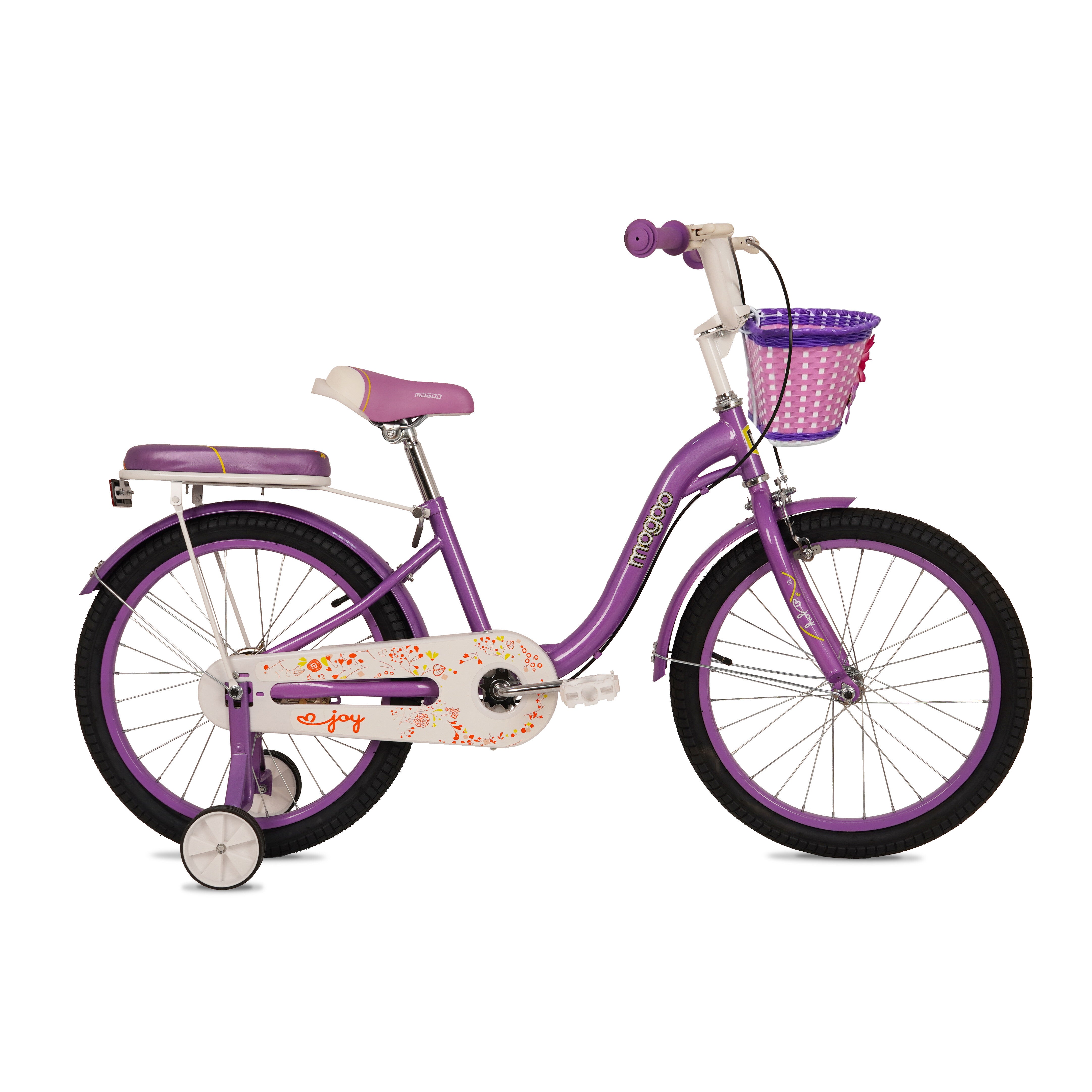 - LONG-LASTING COMPANION: Mogoo Joy has a fancy design, a rear seat, and attractive colors such as pink and purple to make it any girlƒ??s best bike. Training wheels will help your child get more independent as they get comfortable on two wheels.