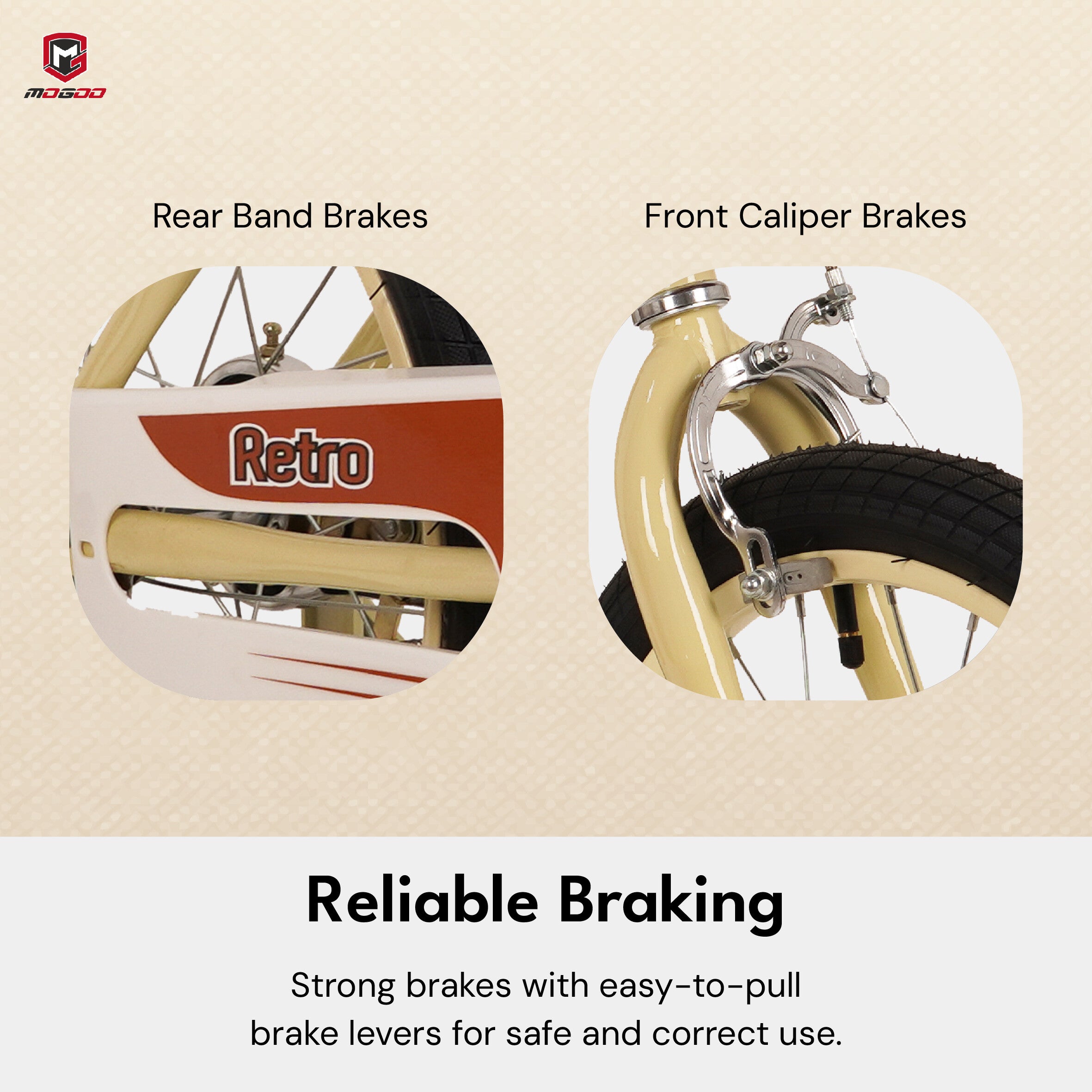 Introducing the Mogoo Retro 12-inch kids' bike, the perfect blend of classic design and modern features for your child's riding pleasure! With a sturdy steel frame and training wheels, this bike is perfect for young riders who are just starting out. The Mogoo Retro 12-inch kids' bike comes in three colour options, so you can choose the perfect one to suit your child's style. The adjustable seat ensures that the bike can grow with your child, making it a long-lasting investment that they'll be able to enjoy for years to come. With handbrakes that provide excellent stopping power, your child can ride with confidence and control. The saddle with spring adds extra comfort, making even longer rides a breeze. Plus, the classic design of this bike is sure to turn heads and make your child the envy of the neighbourhood. Whether your child is learning to ride for the first time or just needs a new bike to take to the park, the Mogoo Retro 16-inch kids' bike is an excellent choice. So why wait? Order yours today and watch your child's face light up with joy!