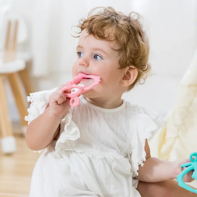 - Bring comfort and challenge your little one, as they explore creative poses to the monkey designed teether
