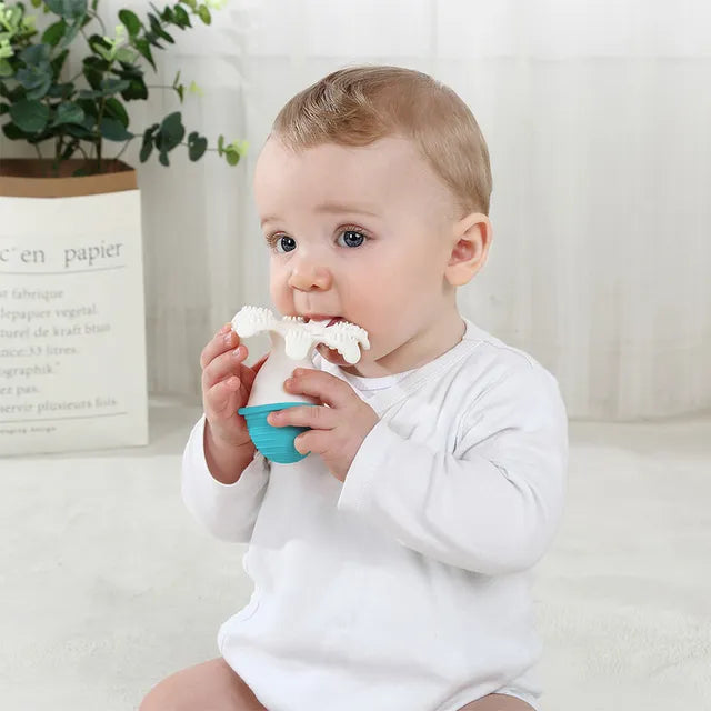 - Two different textured surfaces on tentacles can be a teething aid and toothbrush for fussy and teething babies.