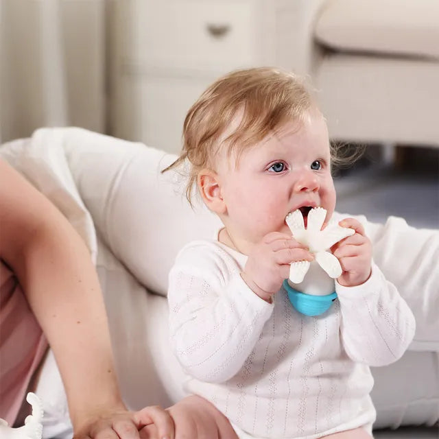 - Leave it in freezer for a while. The frozen teether helps massage sore gums so as to calm baby down.