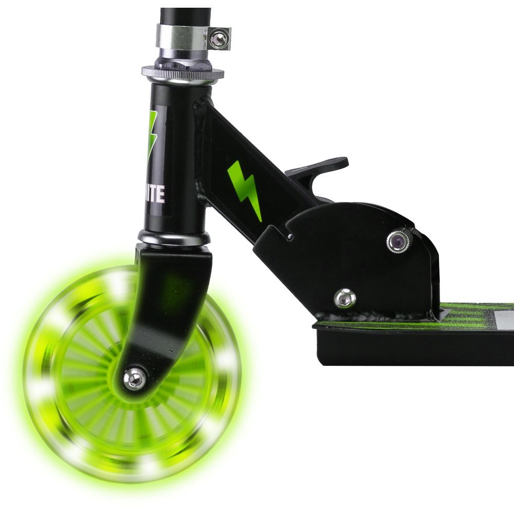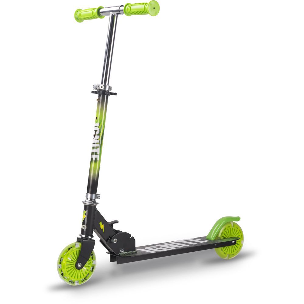 Ignite Flow Scooter2-Wheeled scooter for kids. It is a fun and safe scooter for children with adjustable handlebars, non-slip surface and immediate reaction brake. The wheels are luminescent and do not require batteries. Supports a weight of 50 Kg. With safety pads, LED light up wheels. Quick release. Folding and adjustable handlebar height. Lightweight 2-Wheeled scooter. Includes helmet, knee and elbow pads.