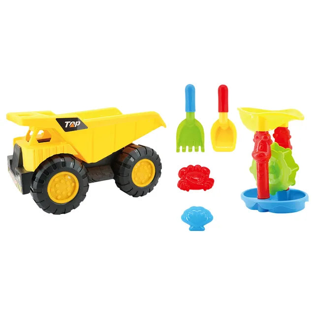 - 6 in1 sand truck with shovel tools, watering can, marine animals molds.