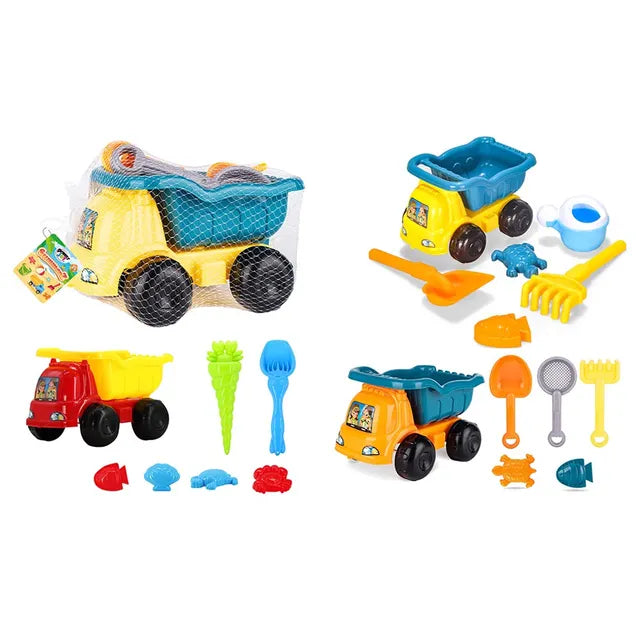 - 6 in1 sand truck with shovel tools, watering can, marine animals molds.