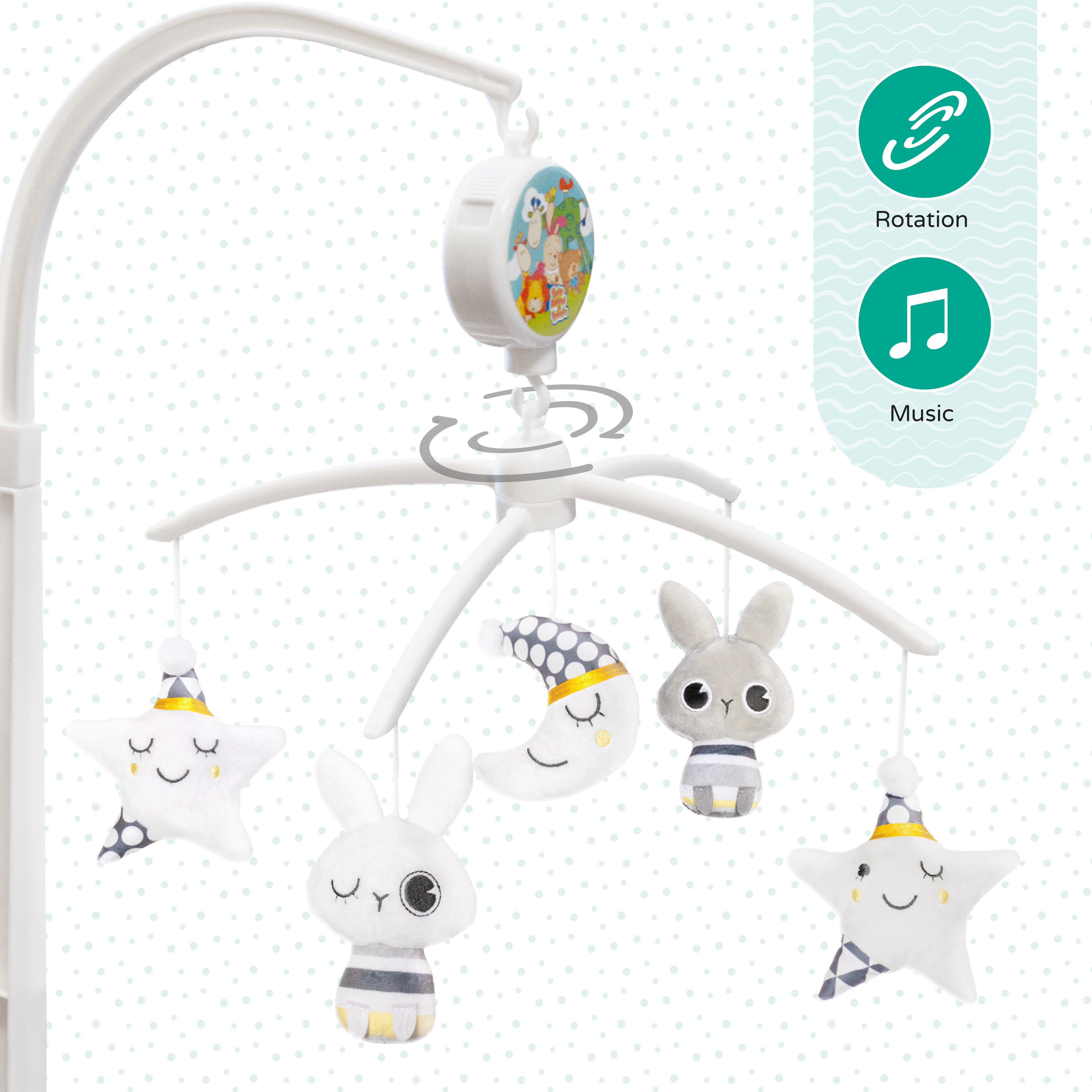- Unisex colours- Our Musical cot mobile features soft and dreamy unisex colours