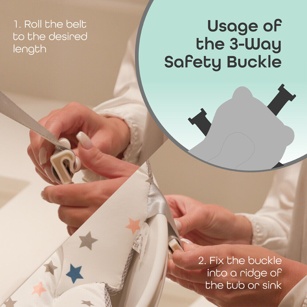This Baby Bath Pad is also designed with safety in mind. It has three-side fixed buckle suspension prevents slipping and sliding., giving you extra assurance that your baby will remain securely in place during bath time. The inner core of the pad is filled with a soft foam material that provides extra cushioning and support.