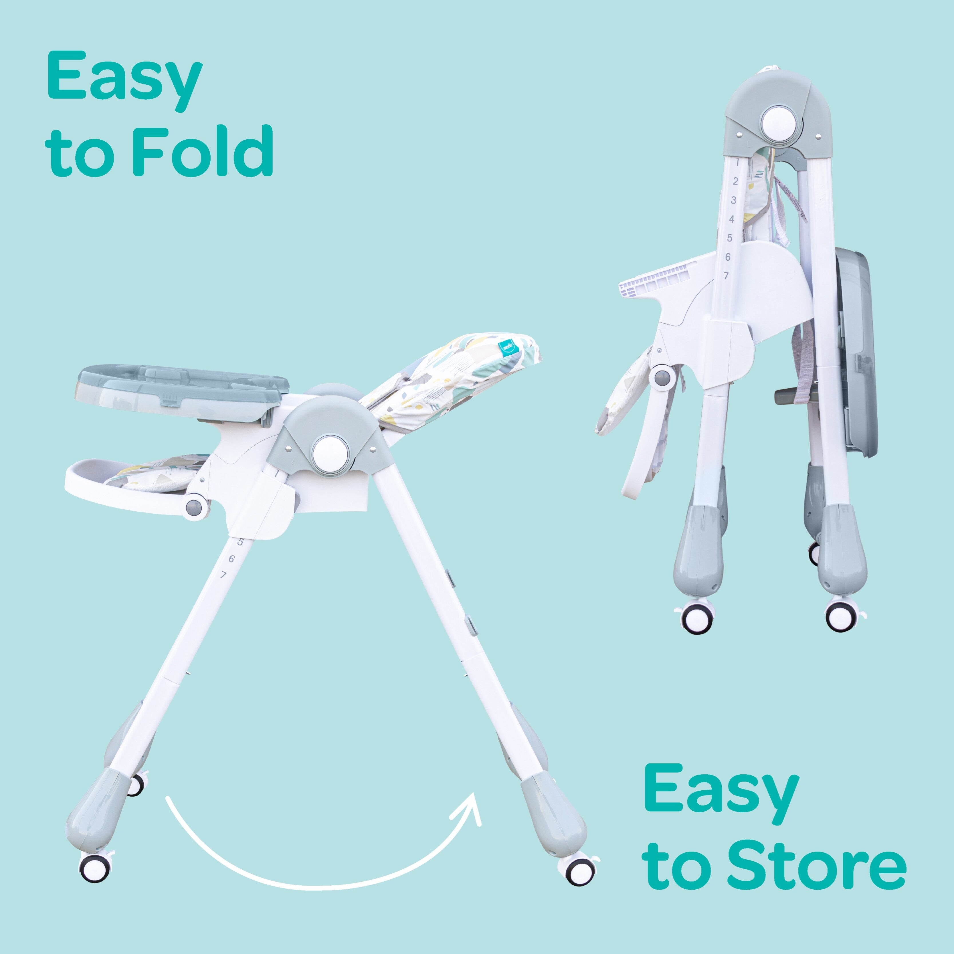 - Space-Saving: Designed with your living space in mind, this highchair offers a space-saving solution without compromising on comfort or functionality. Its foldable design makes storage a breeze, perfect for small apartments or homes with limited space.