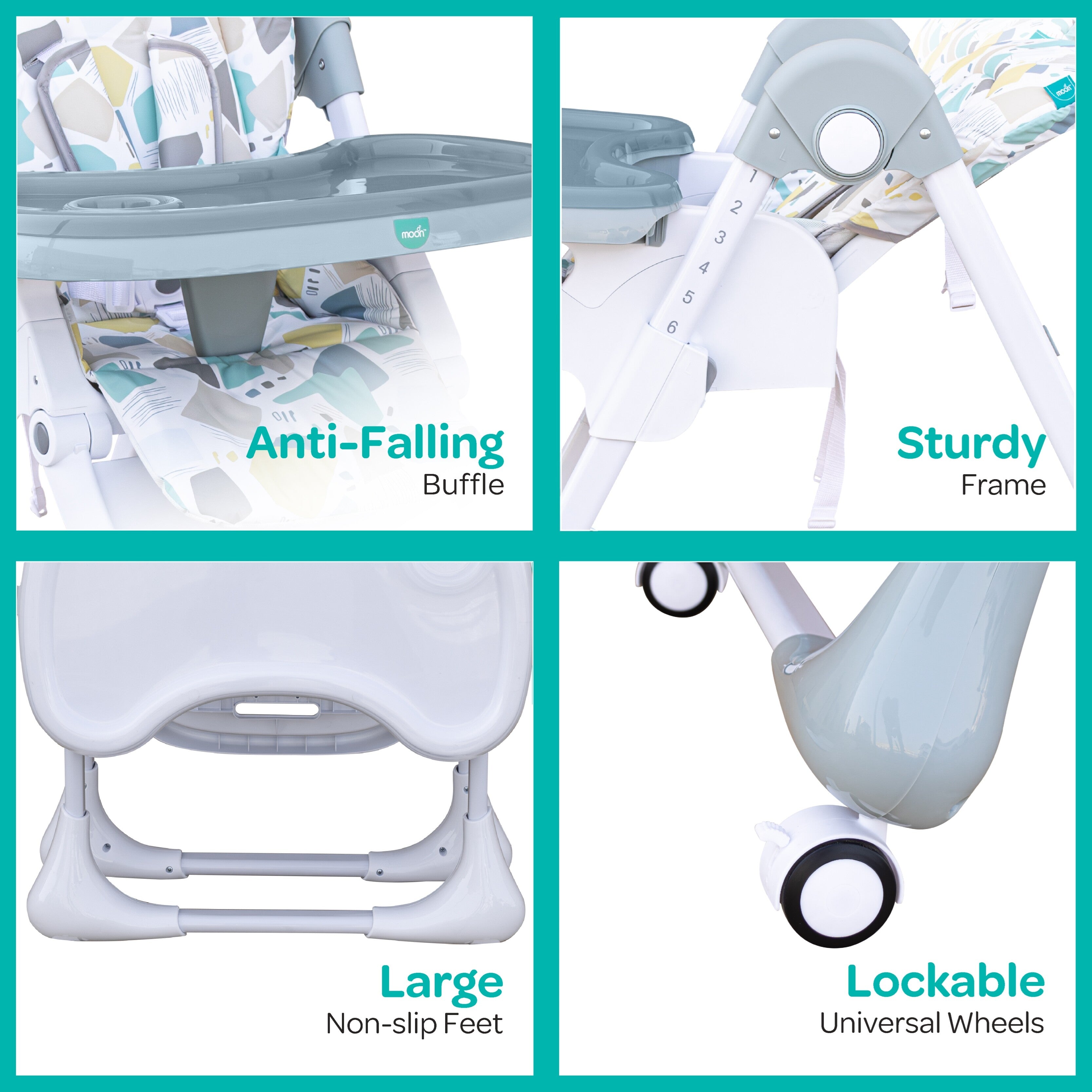 - Modern Design: Elevate your baby's dining experience with this sleek and stylish highchair. Its contemporary aesthetic effortlessly blends into any kitchen or dining room decor, adding a touch of sophistication to mealtimes.