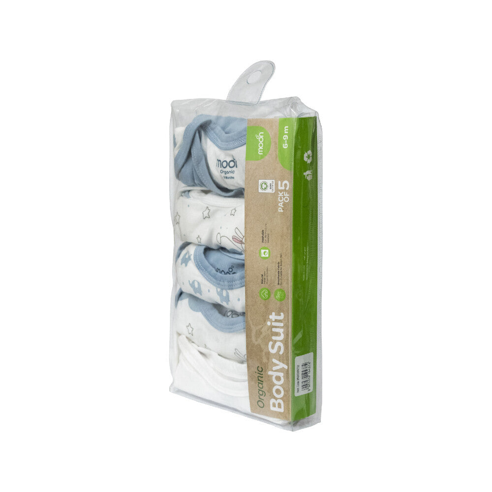 Introducing our Moon Organic Baby Body Suit Set of 5, specially designed to keep your little one stylish, cozy, and safe! Crafted with love and care, these soft and breathable body suits are made from 100% organic cotton, ensuring absolute comfort for your precious baby's delicate skin.