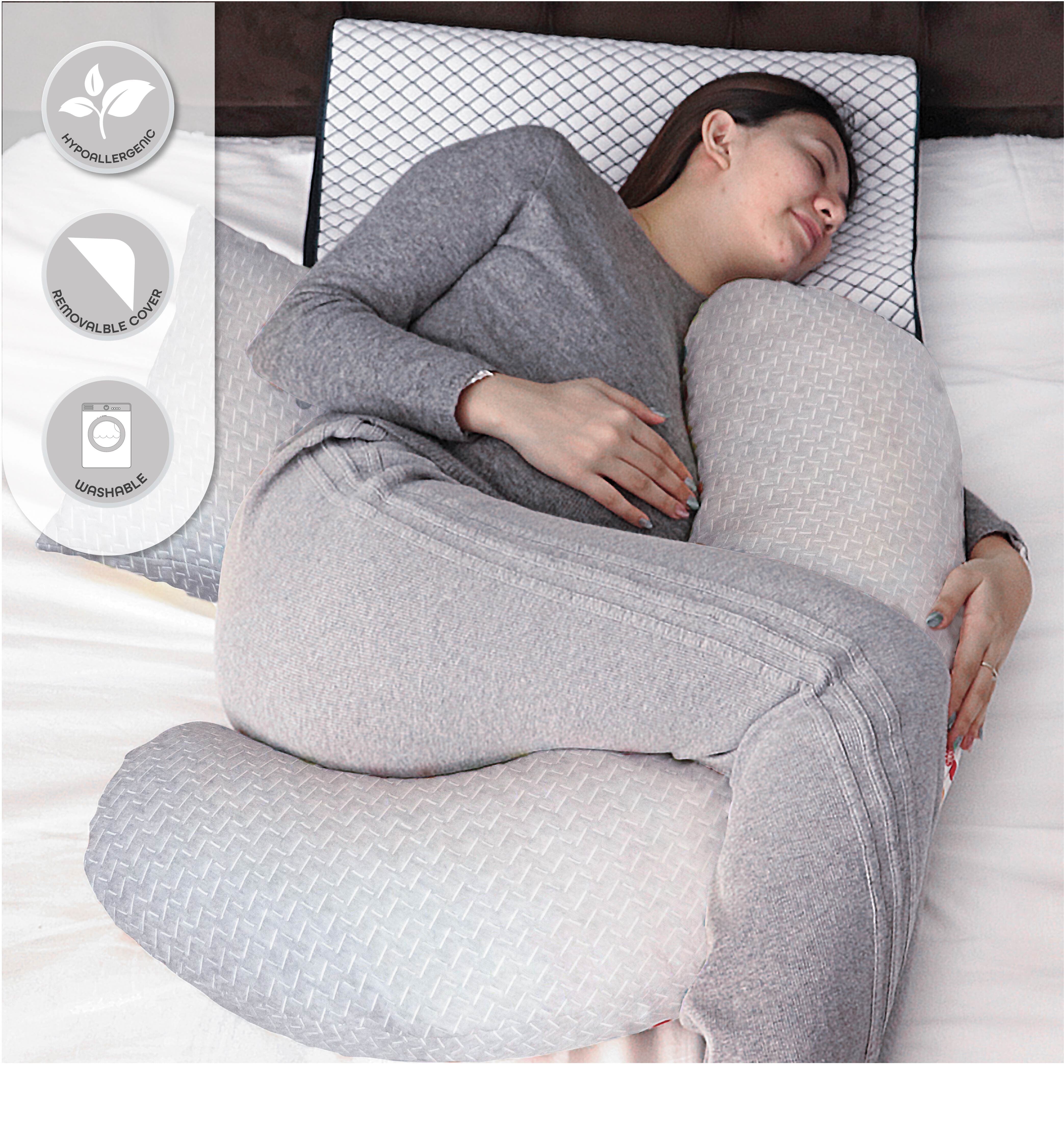 - All in One Pillow and Widely Use Pillow. Maternity body pillow support a cushion when you are sleeping, watching TV/ movie, reading, resting, playing games, and working at home. It cradles your body to reduce tossing and turning, providing you a quality sleep and keep your neck, shoulder, back and hip aligned during night.