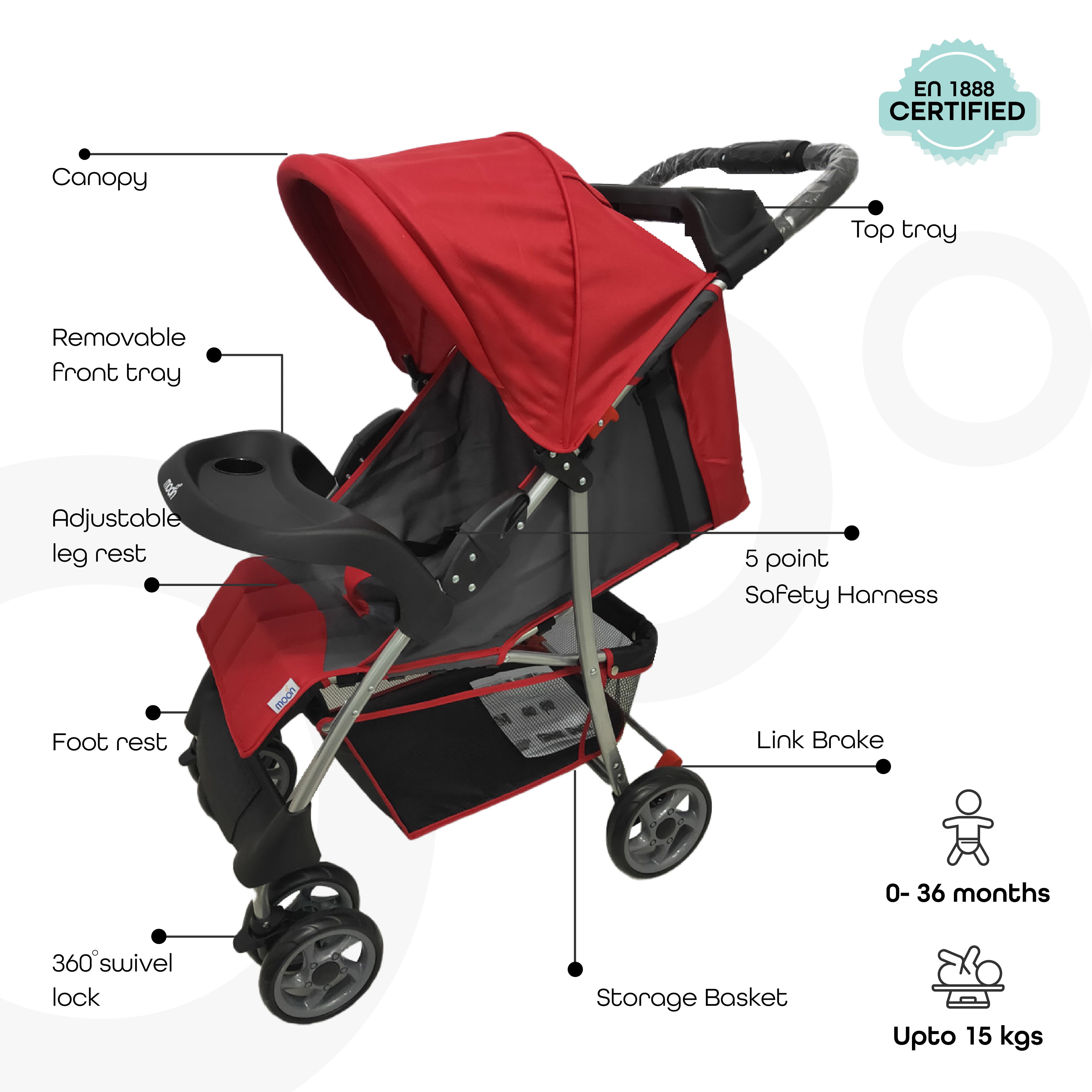 - This stroller & pram comes with a strong cover that protects your child from harmful sunshine and insects.