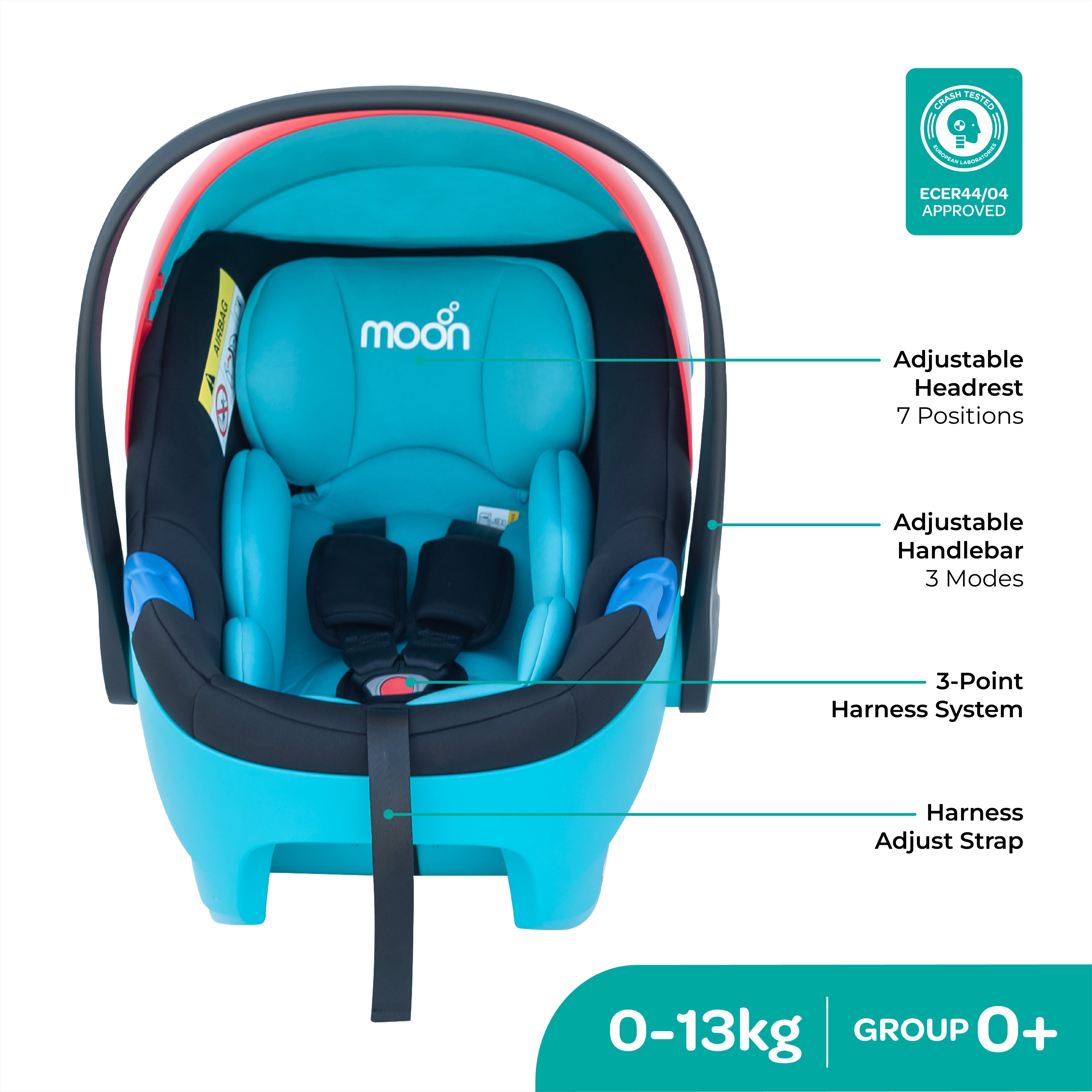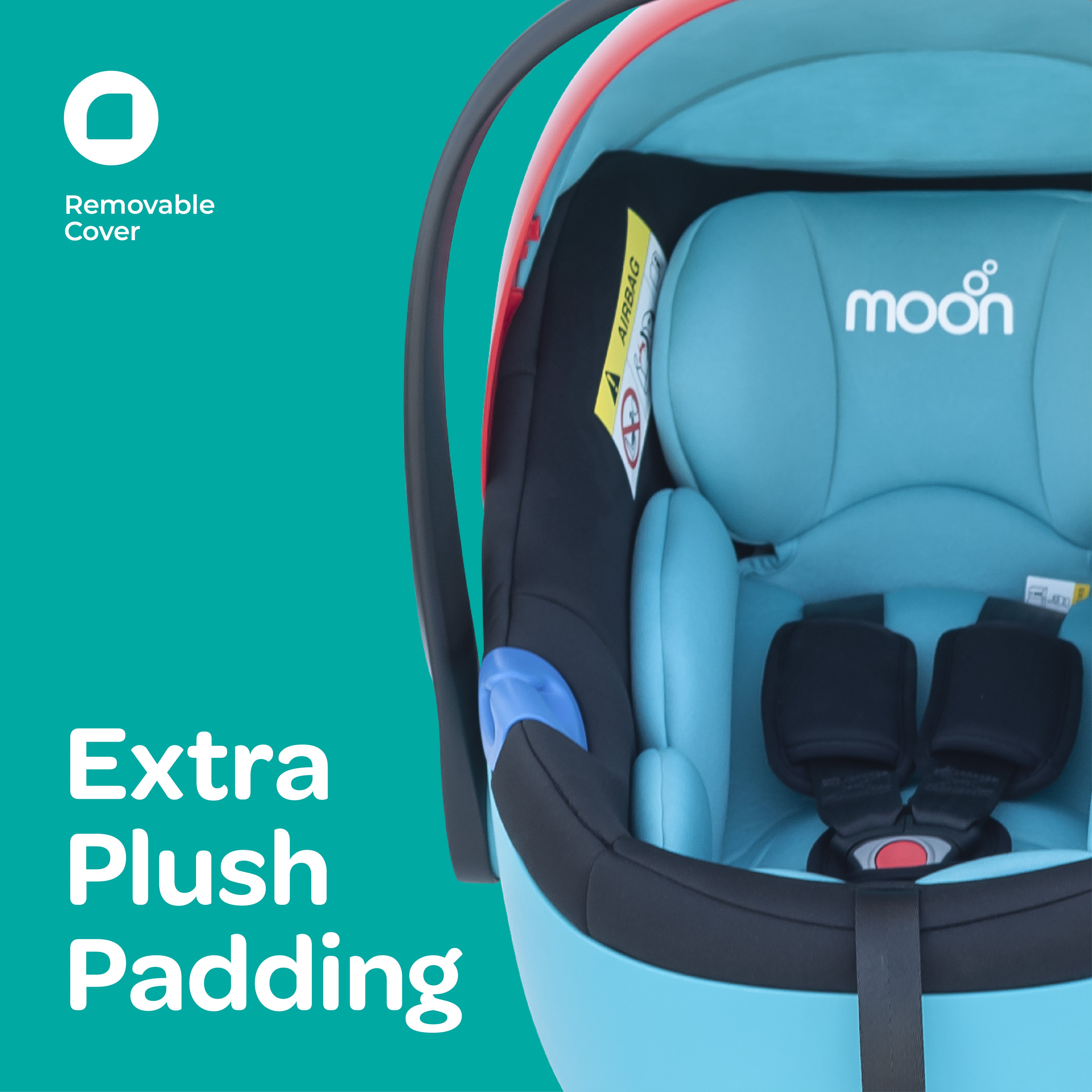 - Safety: MOON Baby car seat carriers offer superior protection, as they are designed to fulfil the stringent safety standard test requirements. Additional features like the secure straps and buckles make sure that your child is secure and safe in their seat.