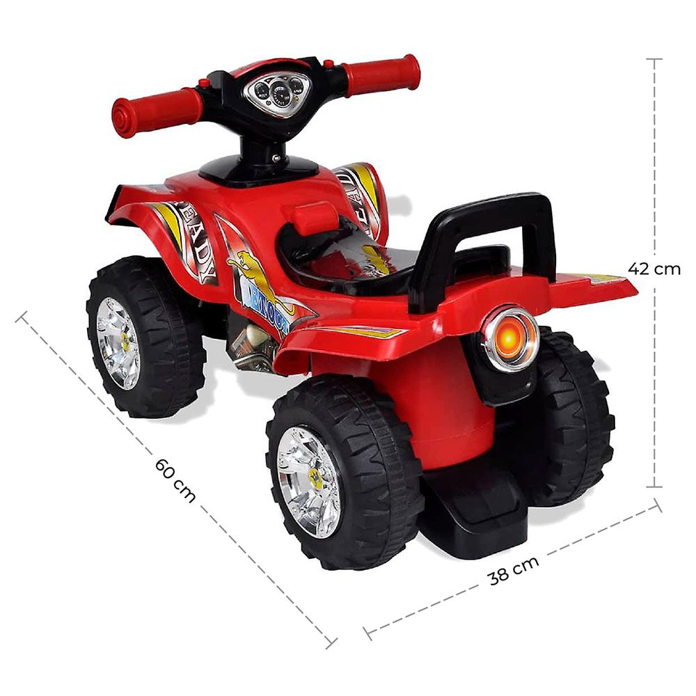 - Classic ATV Design: Inspired by real ATV designs, this quad bike will make your little one feel like a true adventurer. Its vibrant LED lights, realistic music, and sounds add to the excitement, making every ride a thrilling experience.