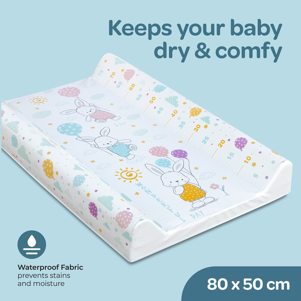 Made with a high-quality waterproof material, this changing pad offers excellent protection against leaks, spills, and accidents. The contoured design with raised sides offers added security, preventing your baby from rolling or falling off the pad. Experience the convenience and peace of mind this changing pad brings to your parenting journey!