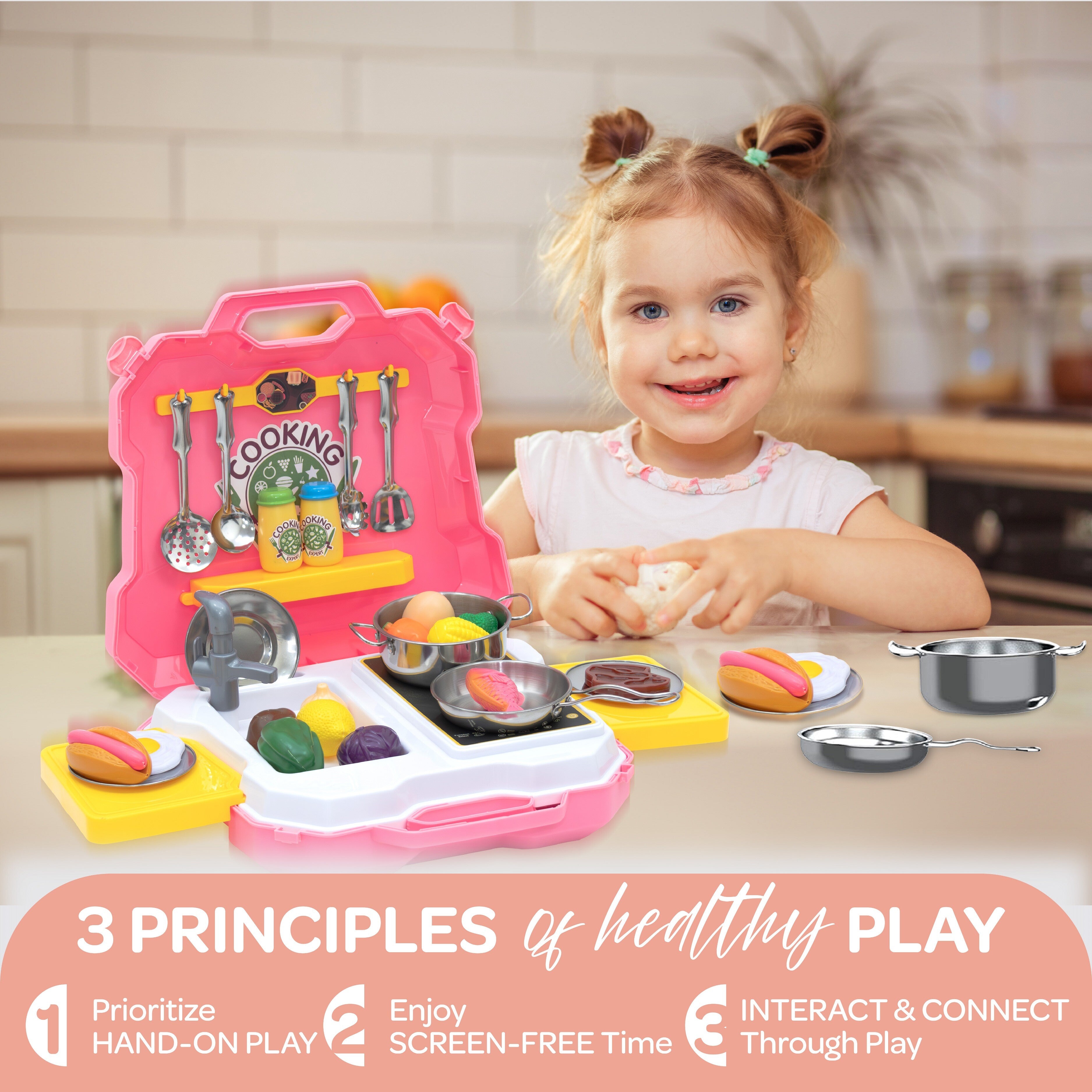 - Portable and Convenient: This lightweight and easy-to-carry cooking set is perfect for travel or playdates. The entire set fits neatly into a compact case, ensuring convenient storage and portability, making it an ideal gift for toddlers and young children who love to play on the go.