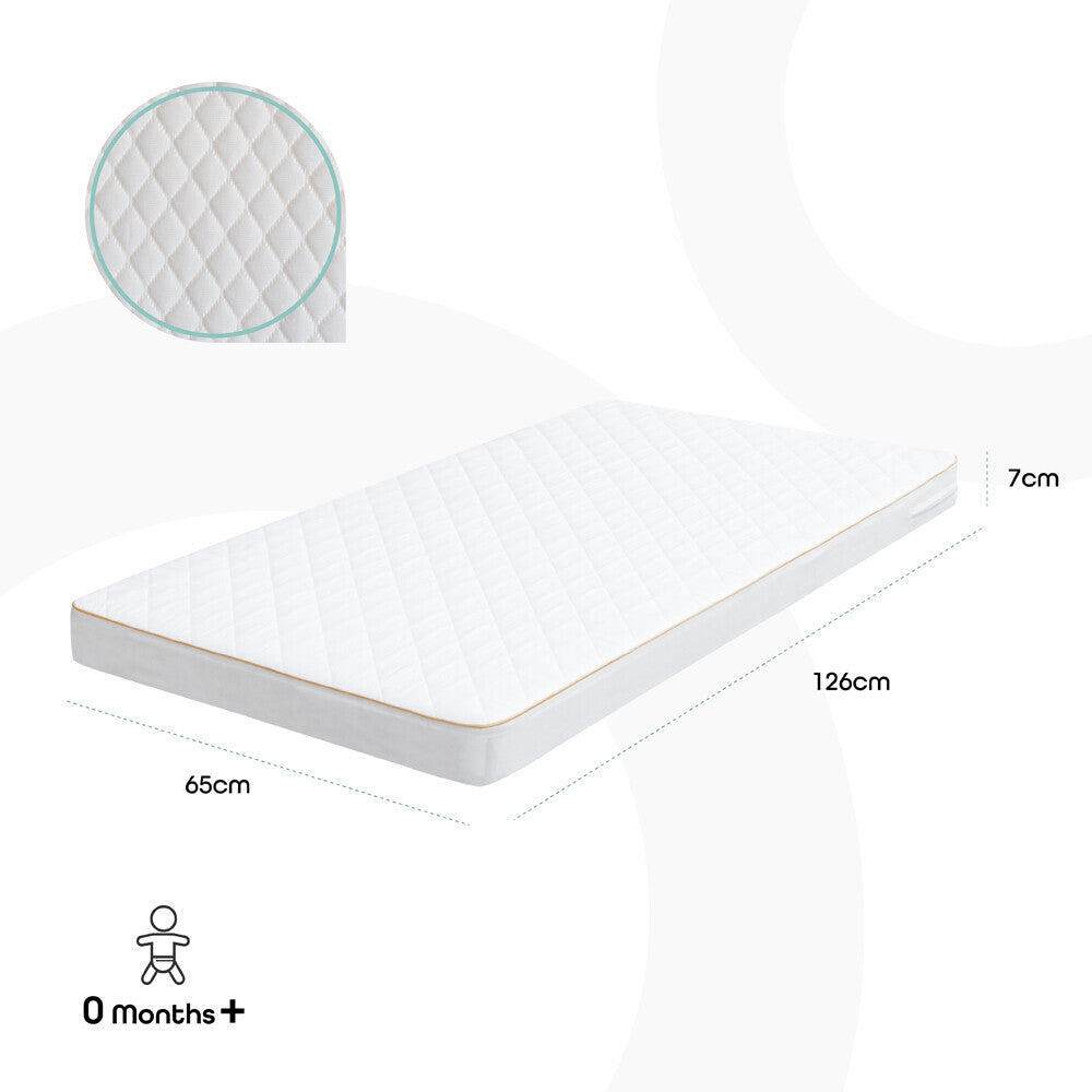 Moon crib mattress is designed with a lower height of 7cm so it's easier to get in and out of bed. manufactured by our skilled craftsmen it is constructed using a high density foam base layer they are specially designed to provide cooling comfort in the summers and warmness in the winters so despite the weather outside, your little one can have a sound and peaceful sleep throughout the year. it has a removable & easily washable cover. in all, making this mattress the perfect investment for your child's comfort and safety.