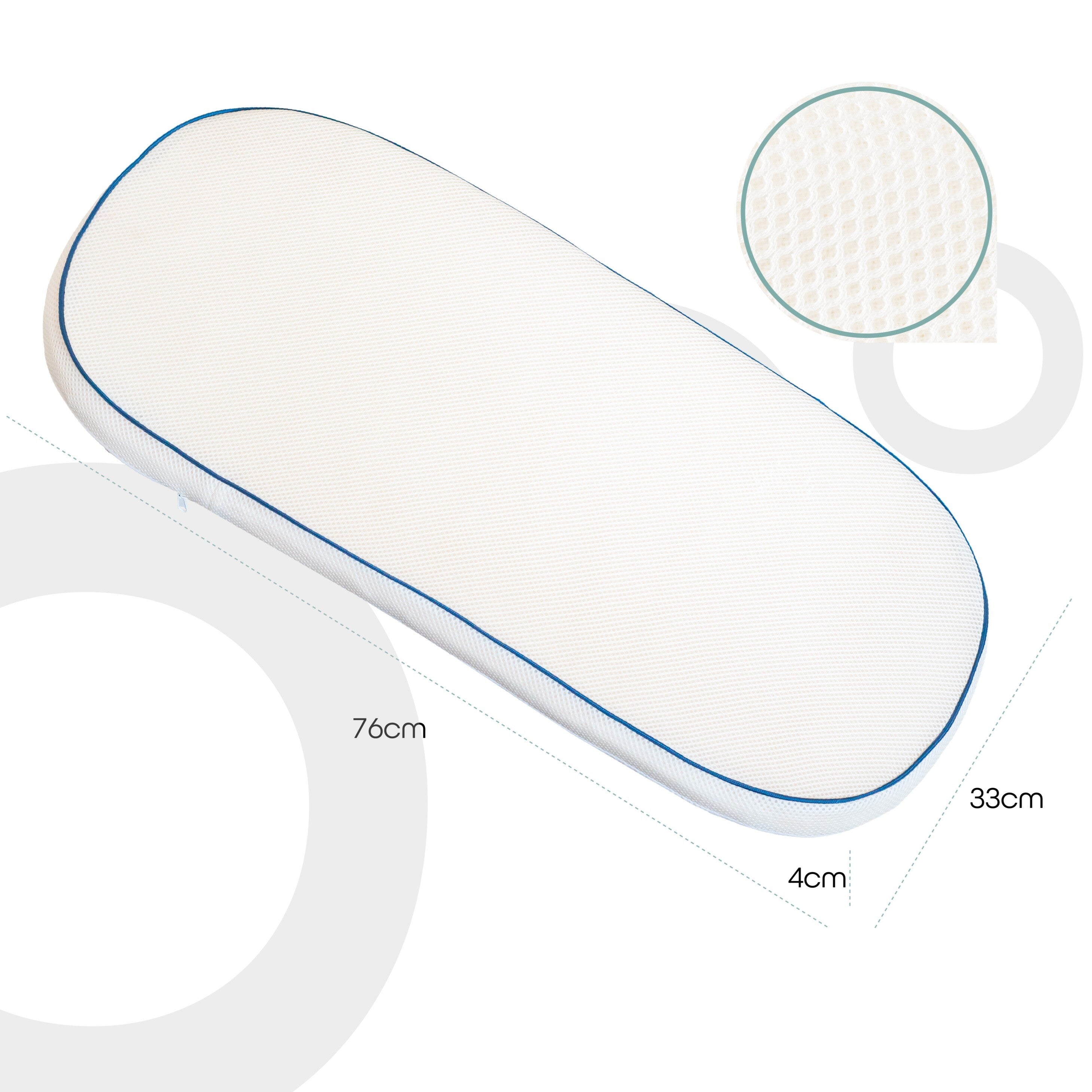 - Compatibility- Fits perfectly with BASSINET STROLLER, CRIB, Clair de Lune Palm, Noah pod, and any other moses basket that requires a 76x33x4cm mattress.
