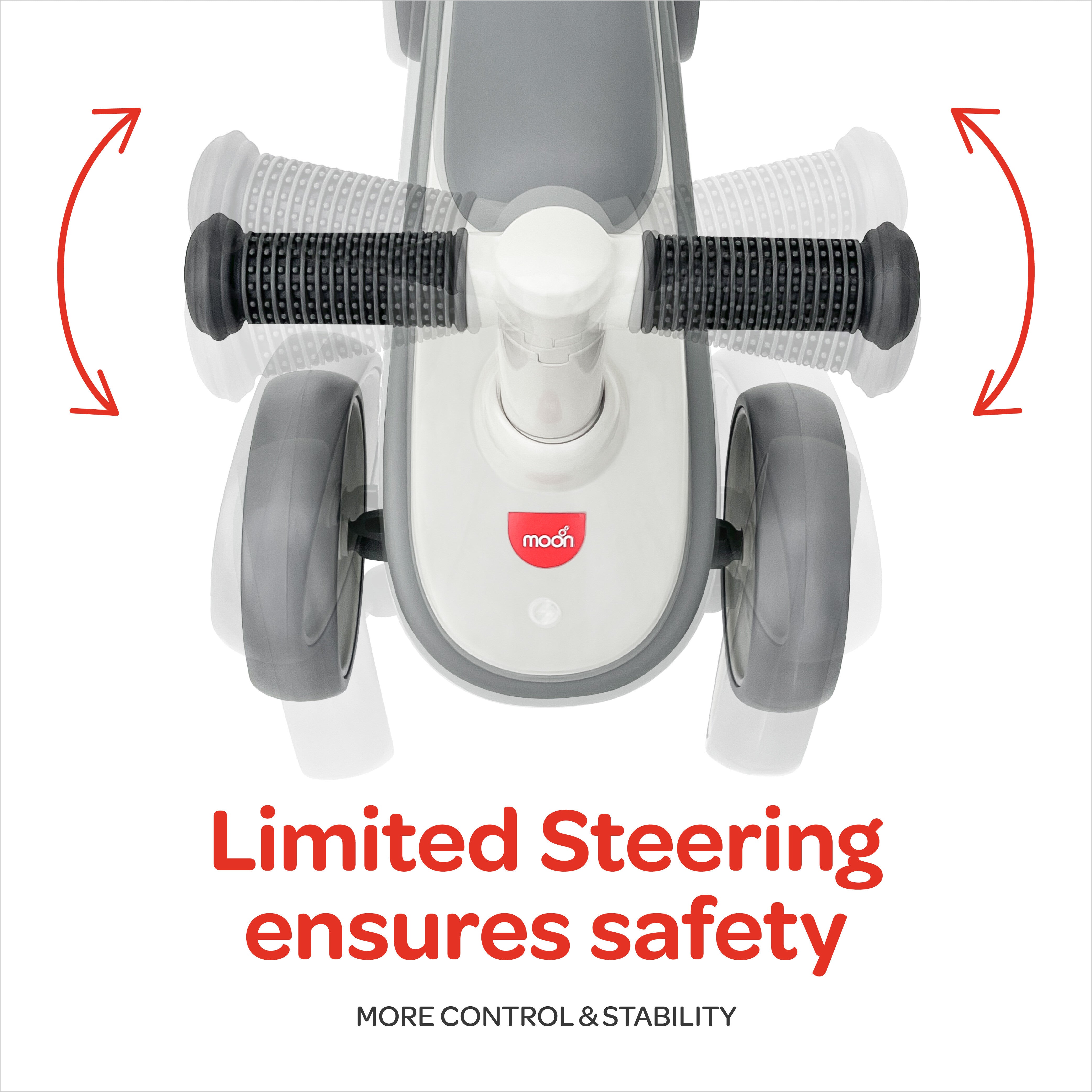 - Extra Grip Handlebars: The handlebars feature non-slip grips that provide a secure grip for kids and ensure that their hands won't slip off during use. The limited steering can prevent rollover, and the enclosed wheels can prevent the babys feet from being caught and slipping.