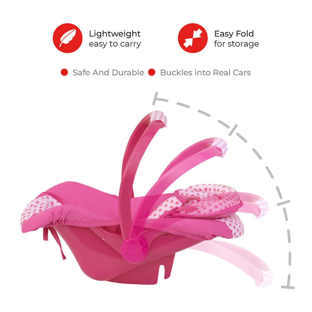 - Interactive and Educational: Let your child imitate and nurture their baby dolls with this carrier car seat. It promotes Montessori-style play, teaching responsibility and empathy while providing hours of entertainment.