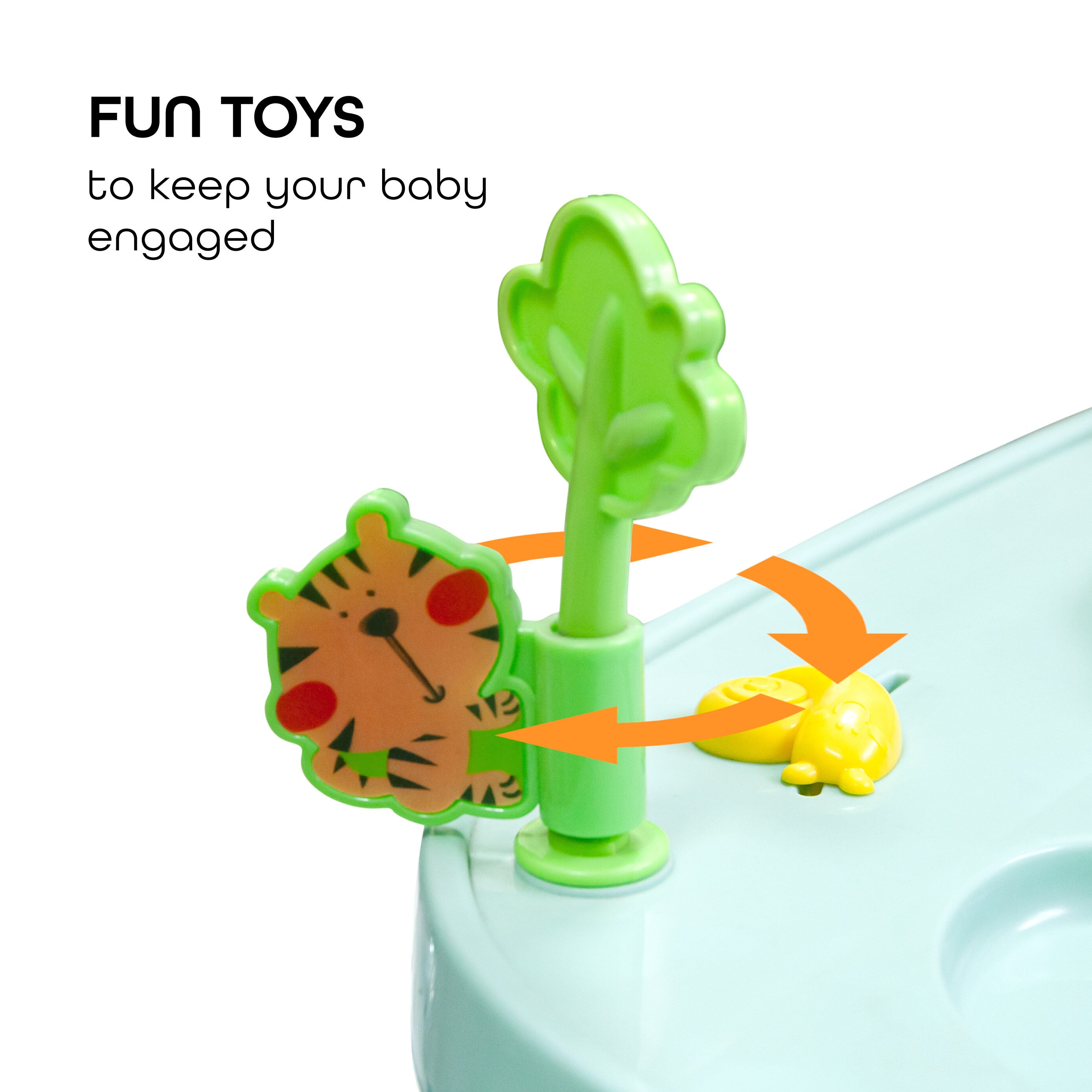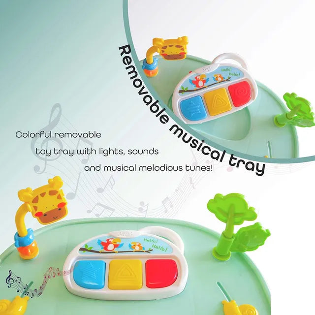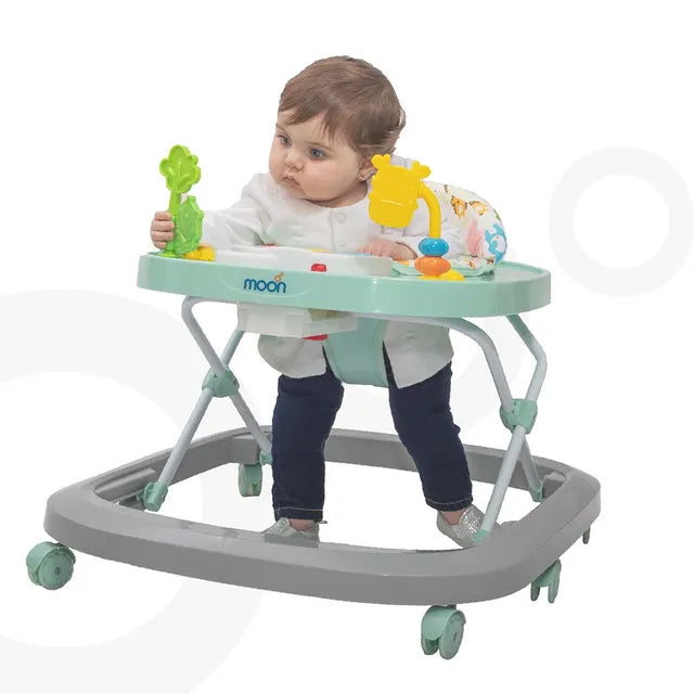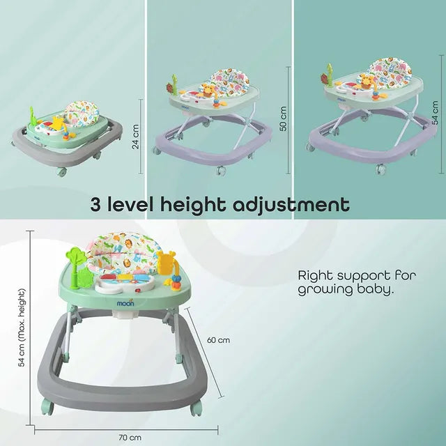 The baby learning walker features playful sounds and toys in the front tray, in a variety of colours, much to the enjoyment of your child. The walker'ss height is adjustable and hence, convenient.