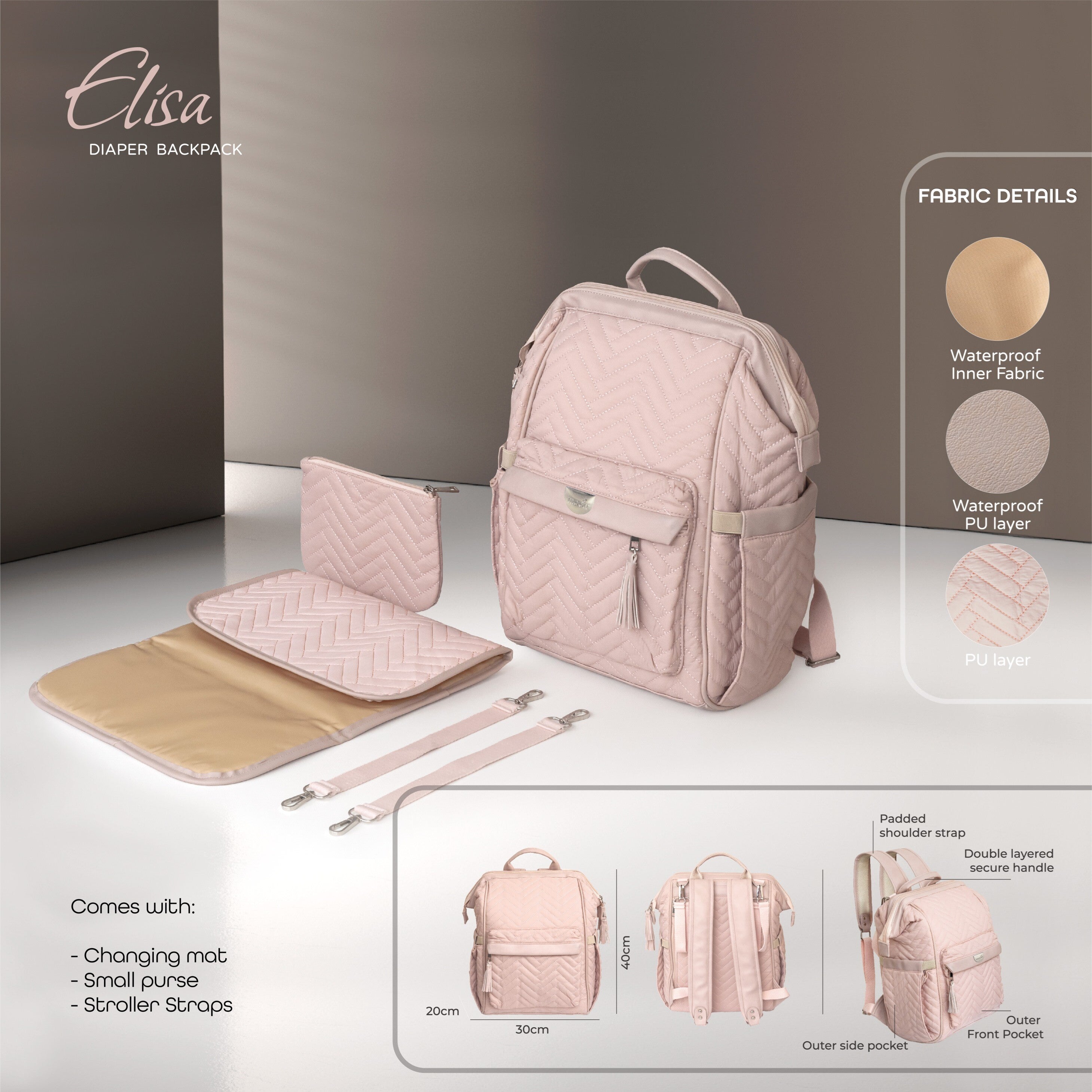 It is often hard to travel with a baby, as much for comfort as for luggage. There are a lot of baby essentials that are required day to day and carrying those while travelling can be a problem, which is why Moon is bringing you the ELISA diaper backpack. The ELISA has specifically been designed to assist with travels so you can enjoy parenting when outdoors.
