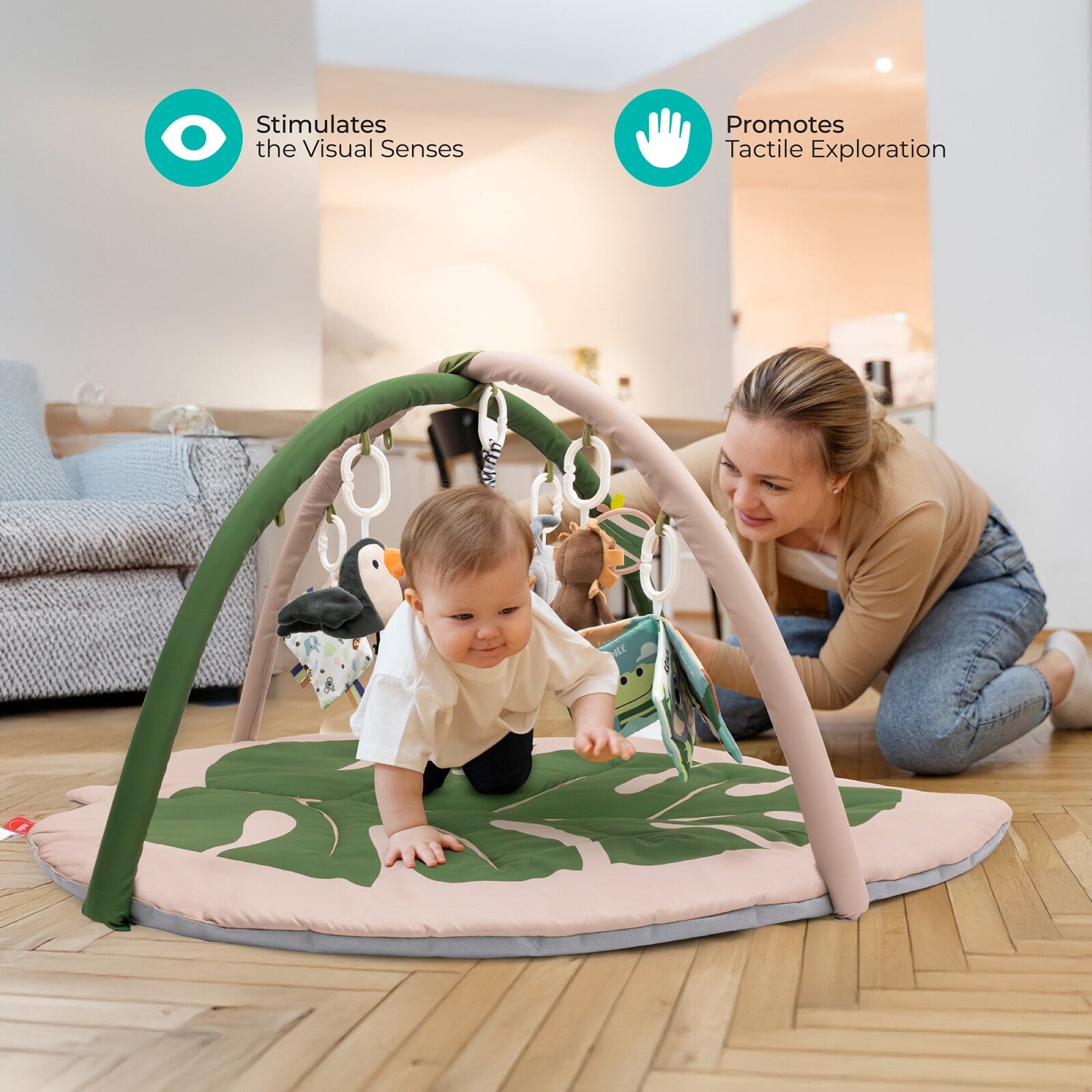 - Bring Joy To Your Baby's World: This forest theme baby play mat is packed with fun! It comes with 7 detachable hanging toys, including rattles, a baby mirror, and a soft baby book, making it perfect for hours of engaging play and sensory development.