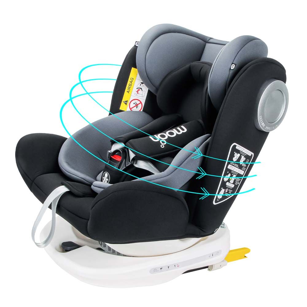- Absolute Comfort: Put an end to your kid's discomfort on car rides with MOON Gyro - A 360-degree rotatable, rear and forward convertible, reclining, growing, fiercely protective, and extremely stylish baby booster seat that is a marvel in the realm of child safety and luxury