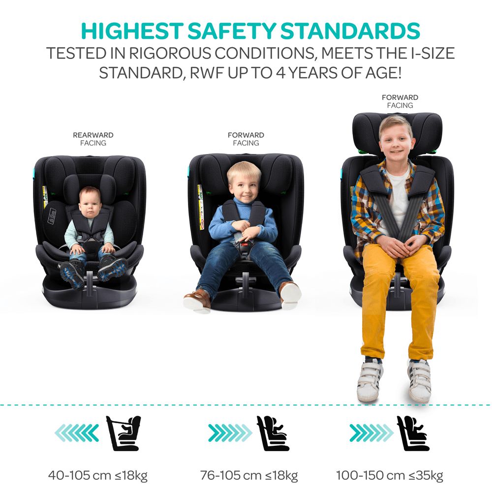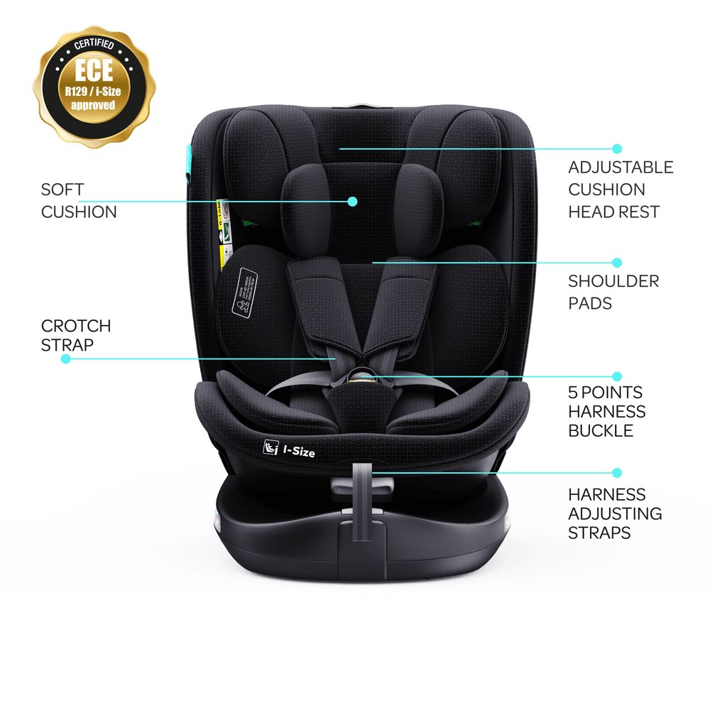- 360 degree Rotation with i-Size Certification: Meets the latest European safety standards (R129) for the highest level of child protection. Suitable for children from birth up to 150 cm (approx. 12 years).Easy Spin 360 degree system allows you to effortlessly position the seat, making it simple to get your child in and out of the car.