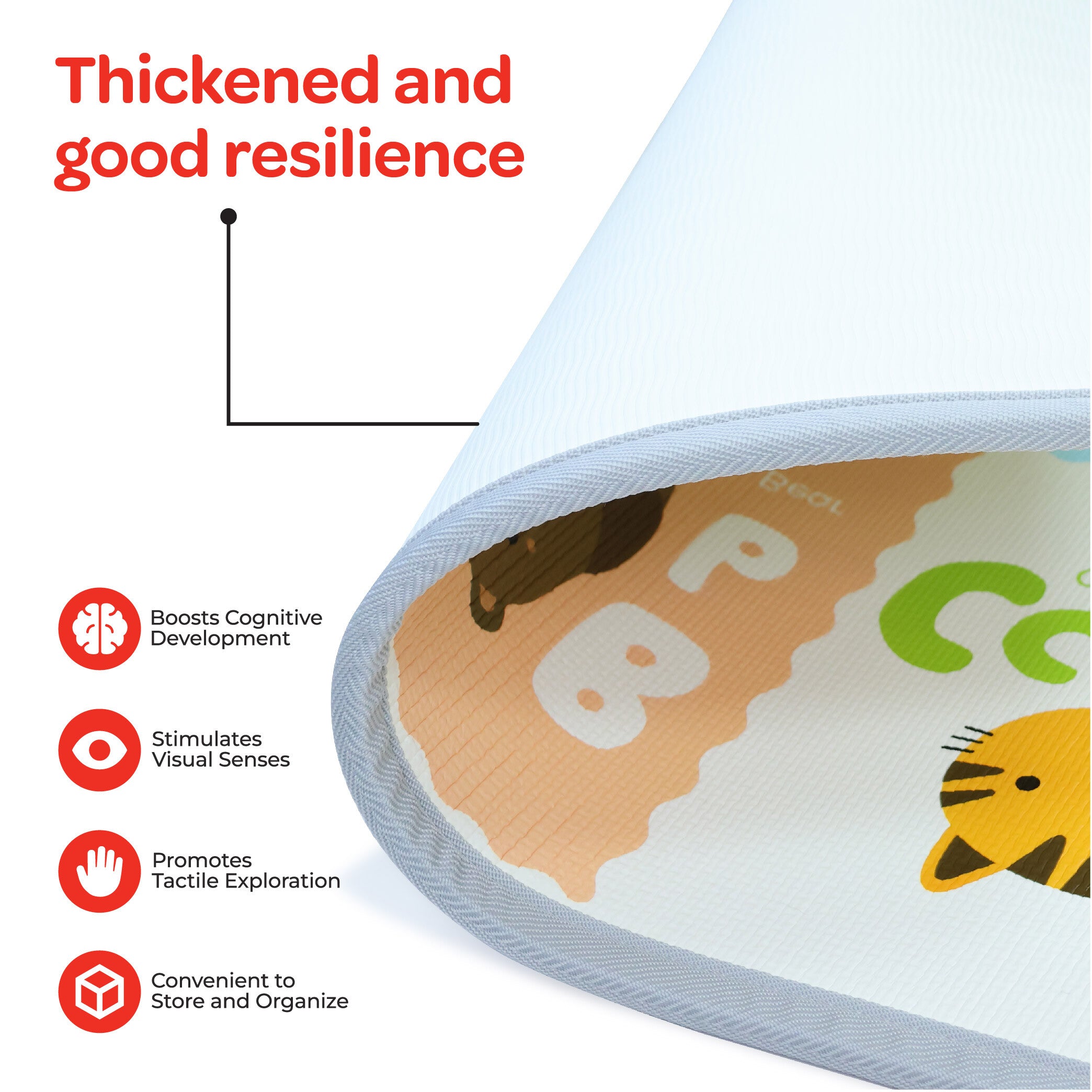 - Stimulates Visual Senses: This crawl floormat features vibrant colours and engaging patterns, providing visual stimulation to captivate your child's curiosity. It encourages imagination, story-telling, and early learning while enhancing their visual perception skills for a fun and interactive playtime experience.