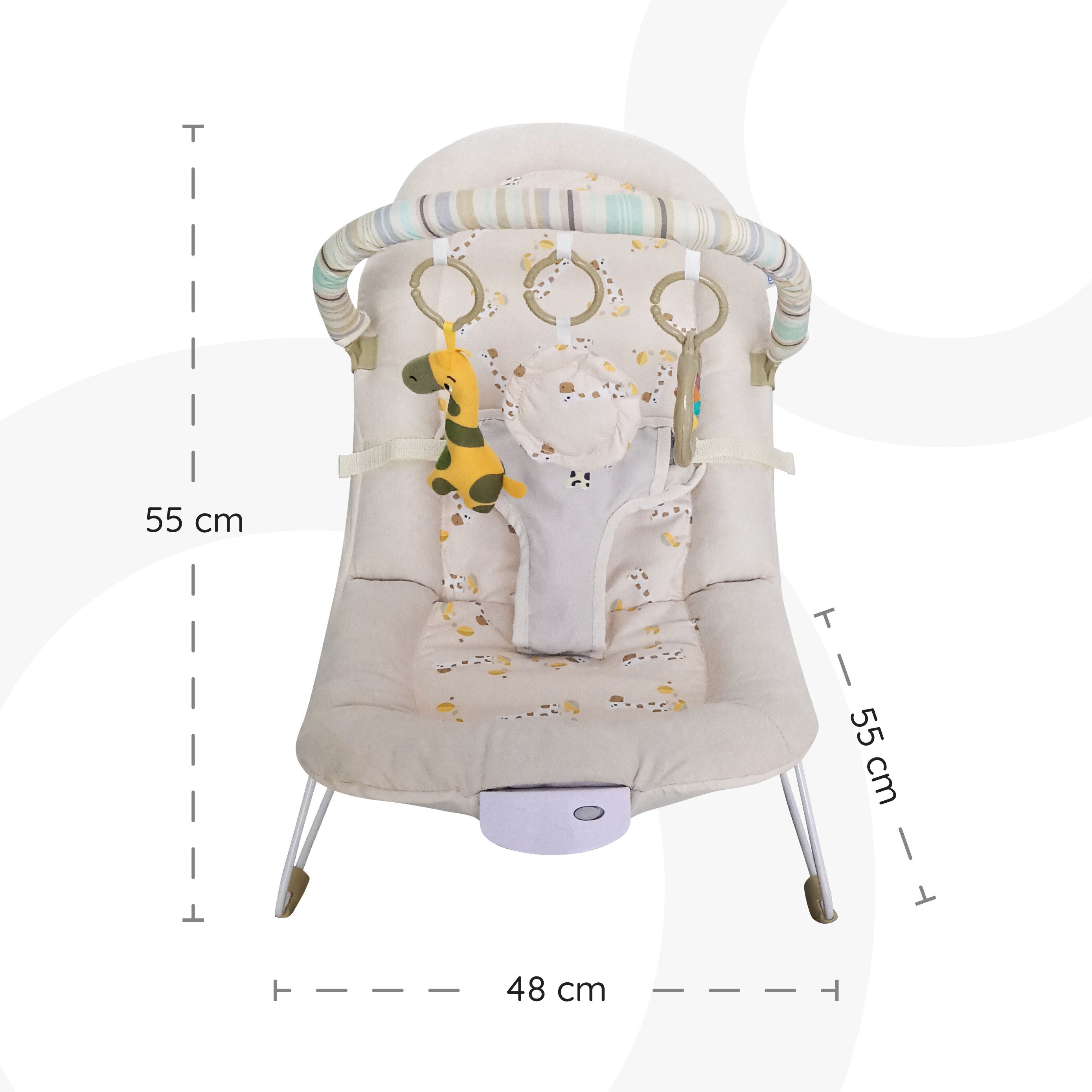 - The bouncer is made to deliver utmost comfort to your little one as per the babys movement. Hanging toys have been added to the bouncer to relieve your baby of any boredom and extra soothing vibrations to lull them to relaxation.