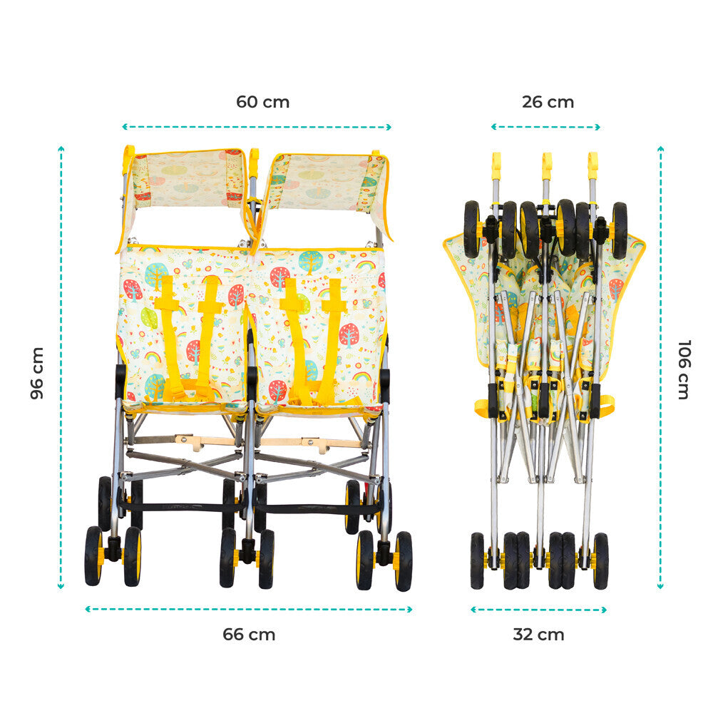 - Double The Fun: Jet around with ease using this twin stroller buggy. Light as a feather, it's perfect for travel. Equipped with a 5-point adjustable safety harness, it ensures your little ones stay secure and comfy while on the move.