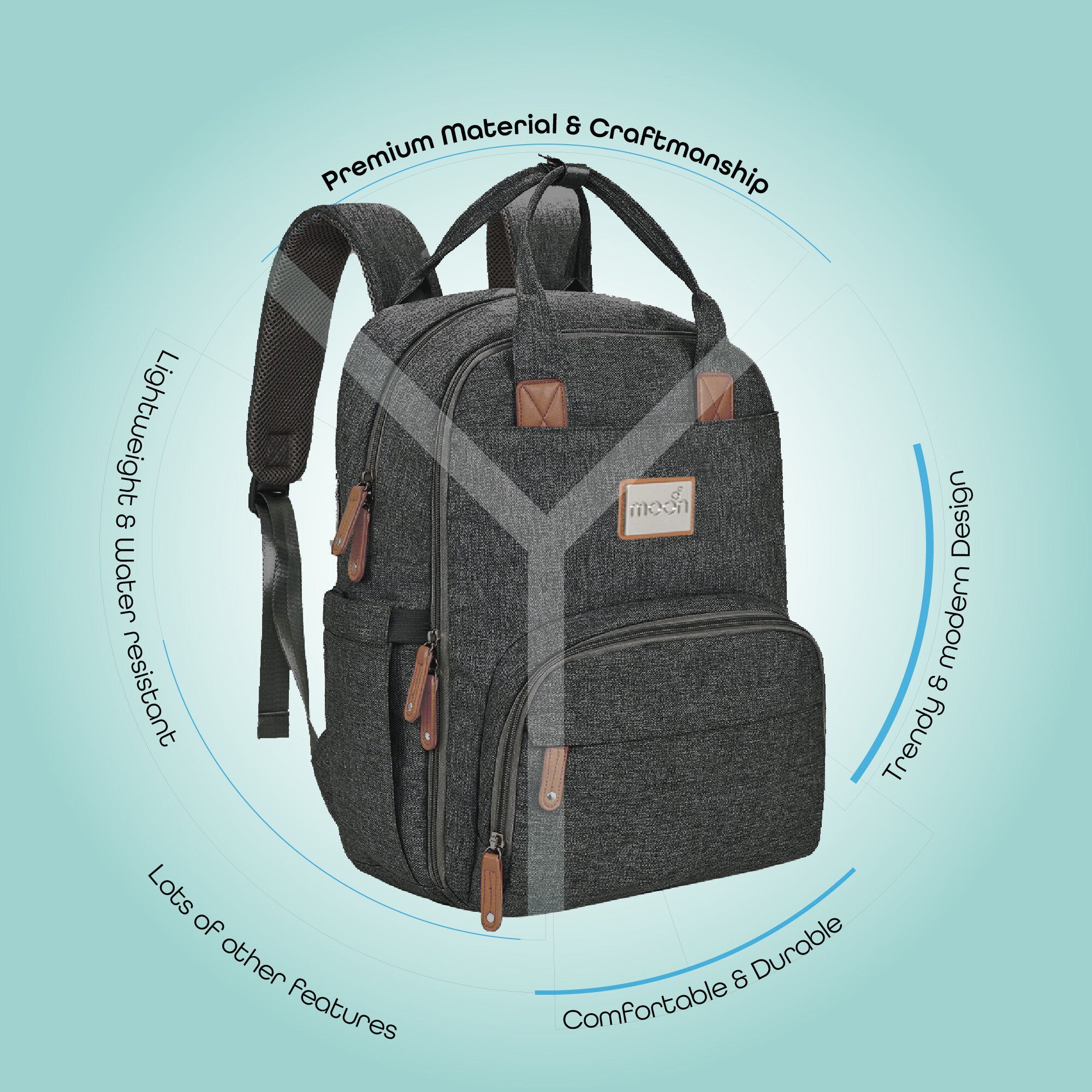 - Lots of storage space- The well-organized structure of the backpack accommodates all sorts of useful pockets, features and gizmos; 2 main compartments, 5 insulated pockets (fit for all major baby bottles), a wipe pocket, a key loop, and a dedicated multi-function changing pad pocket (holds tablets and laptops up to 15.6"). The pockets are edged with easy-glide zippers to make it accessible with one hand.