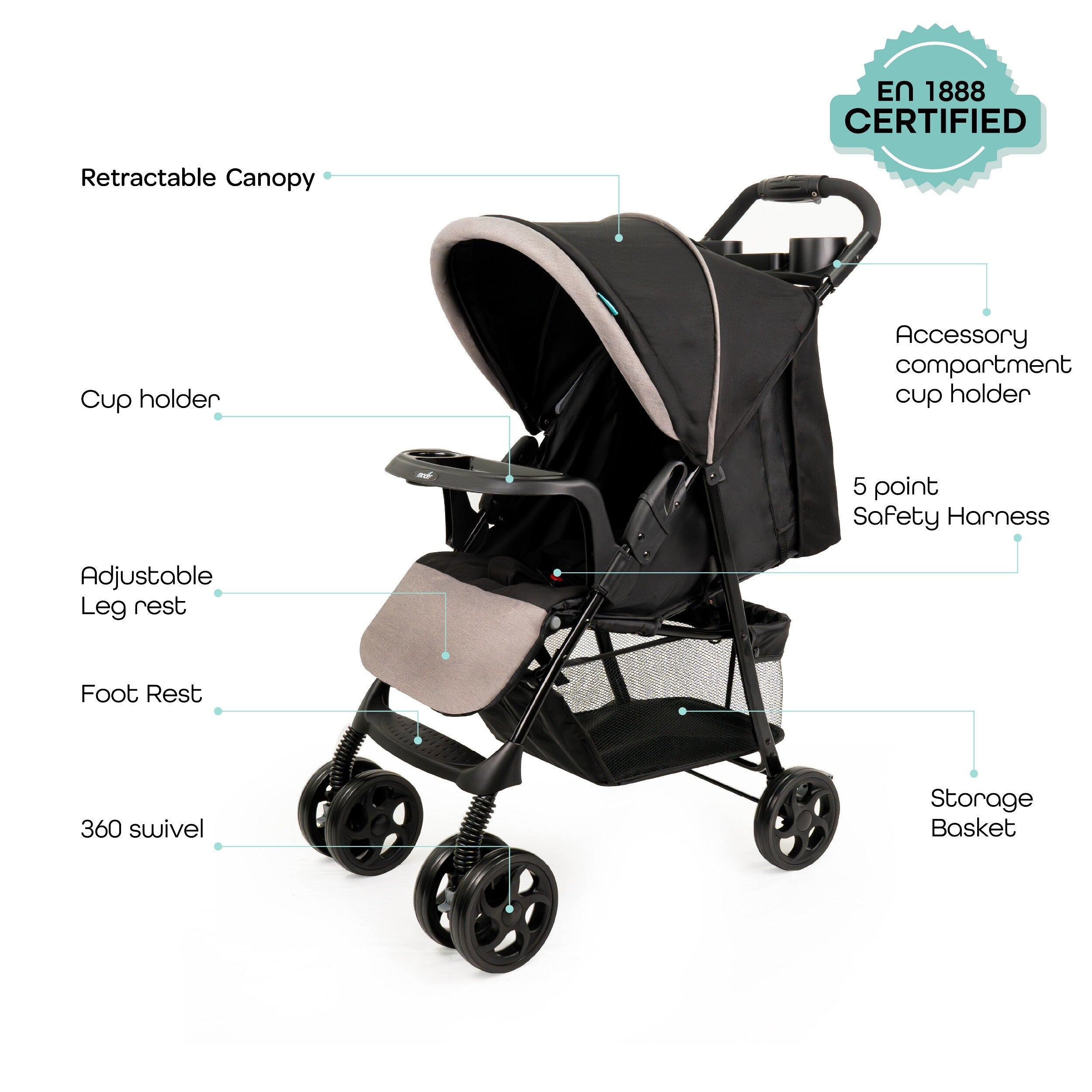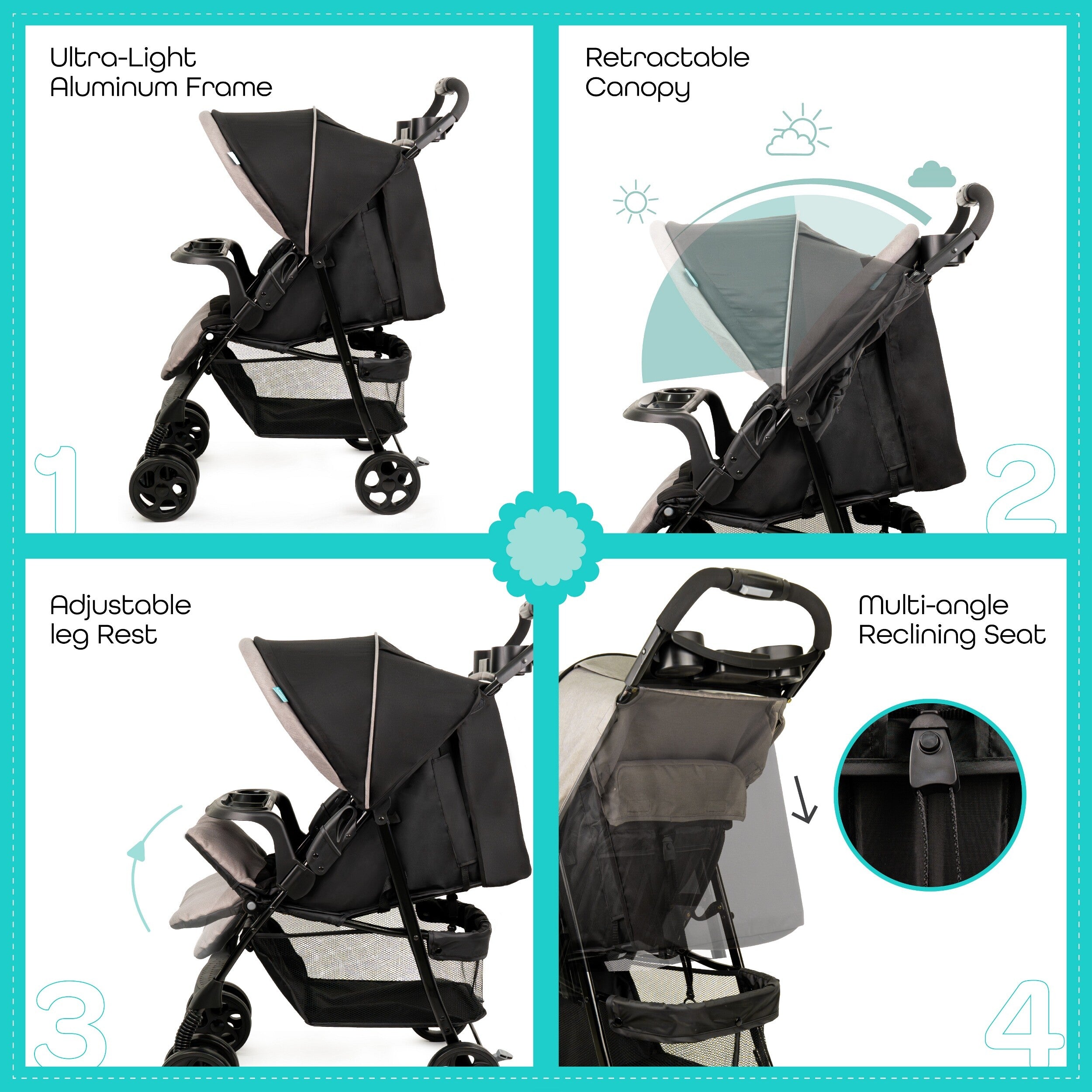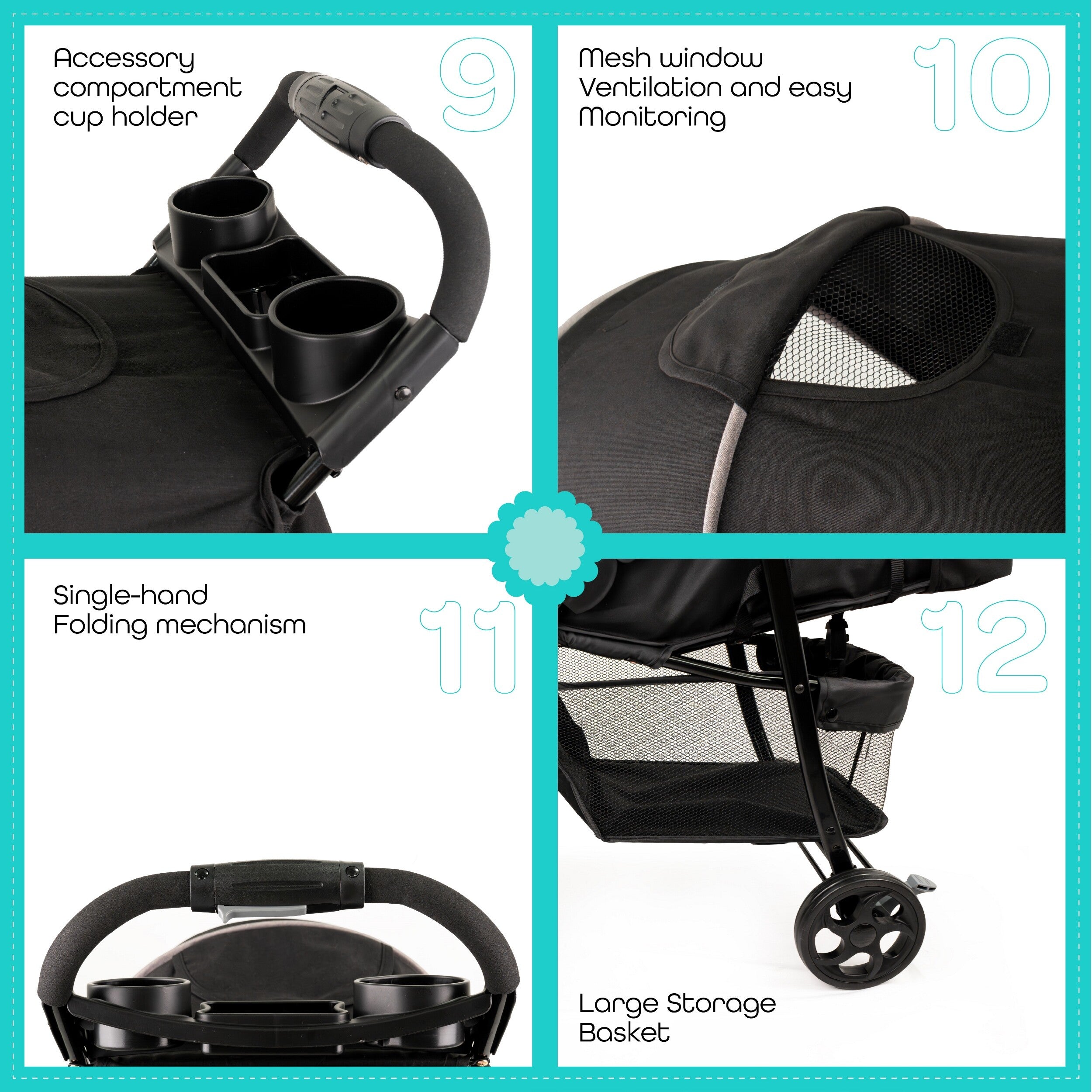 - Built for Safety: Equipped with a 5-point safety harness, swivel wheels for smooth maneuverability, and a one-step folding mechanism, this travel pushchair prioritizes your child's safety while providing ease of use for parents on the move.