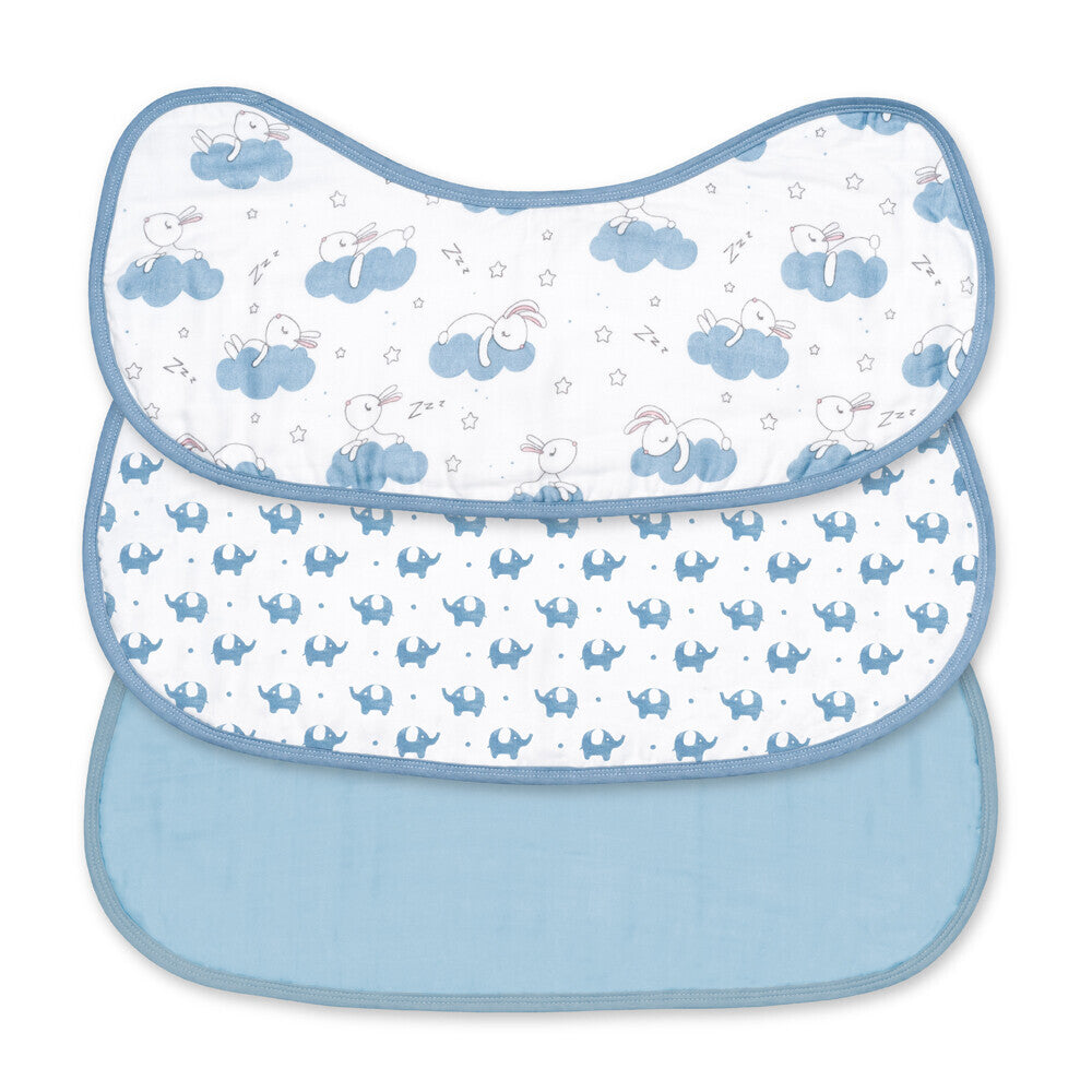 Moon Organic Burpy Cloth - Bunny, Elephant & Blue (Pack of 3)