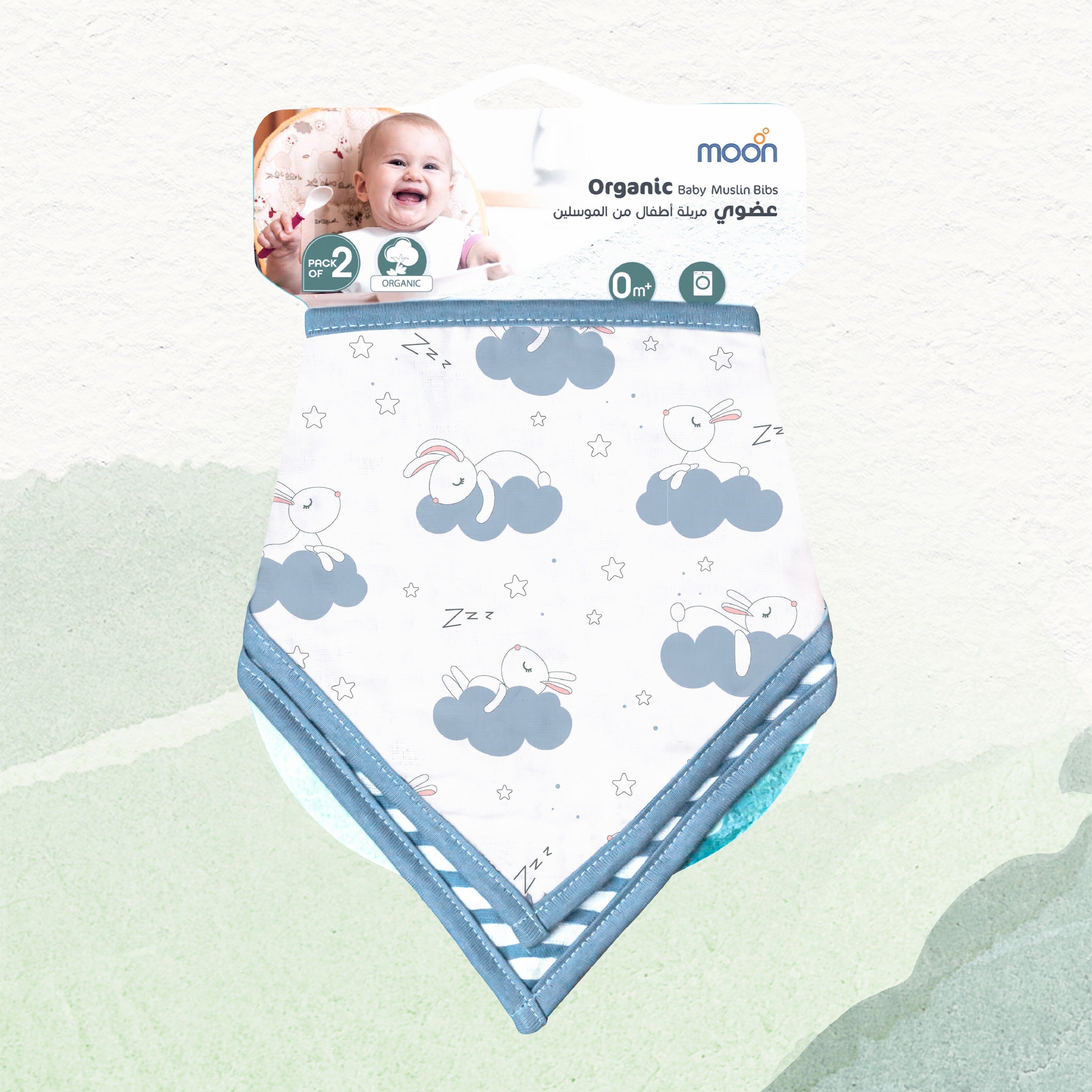 It's no mystery that babies tend to get very messy. What can help, is having the essentials that can soak up every spill your baby makes. Therefore, Moon brings to you this range of stylish and organic muslin bibs to keep your baby's drool, and food stains at bay.