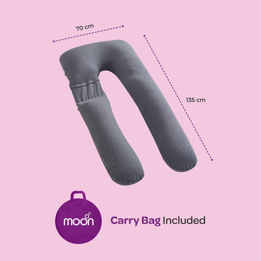 Experience unparalleled comfort and support during your pregnancy with the Moon Organic U-Shaped Maternity Pillow! Are you tired of struggling to find a comfortable sleeping position as your baby bump grows bigger? Look no further! The Moon Organic U-Shaped Maternity Pillow with Detachable Back Support is here to revolutionize your pregnancy journey.
