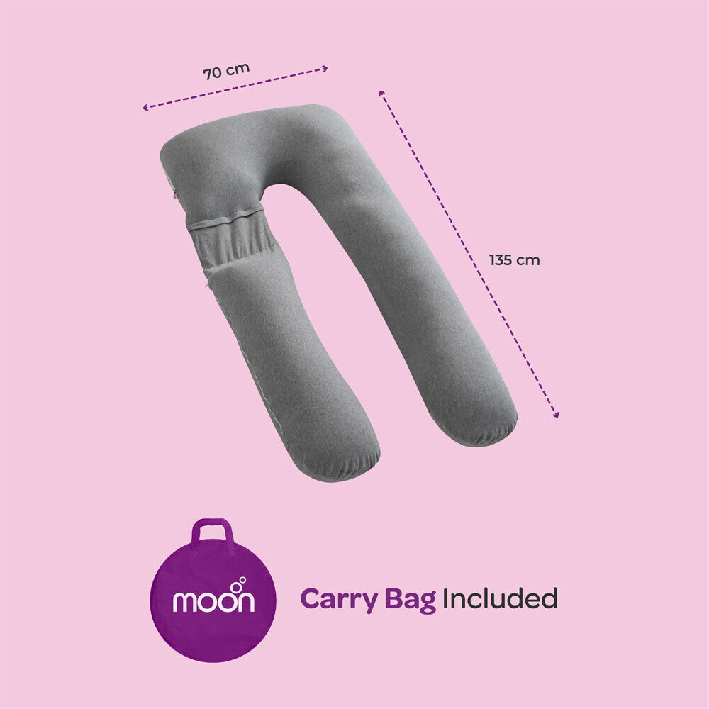 Moon Organic U Shaped Maternity Pillow With Detachable Back Support - Light Grey