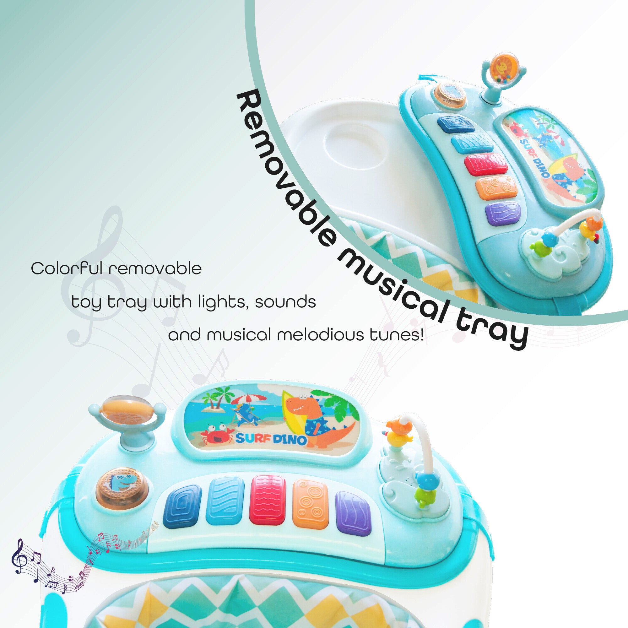 - The small ball placed on the tray can be rotated and the music tray is removable. This quality comes in handy when you wish to hang it on the baby bed/buggy.