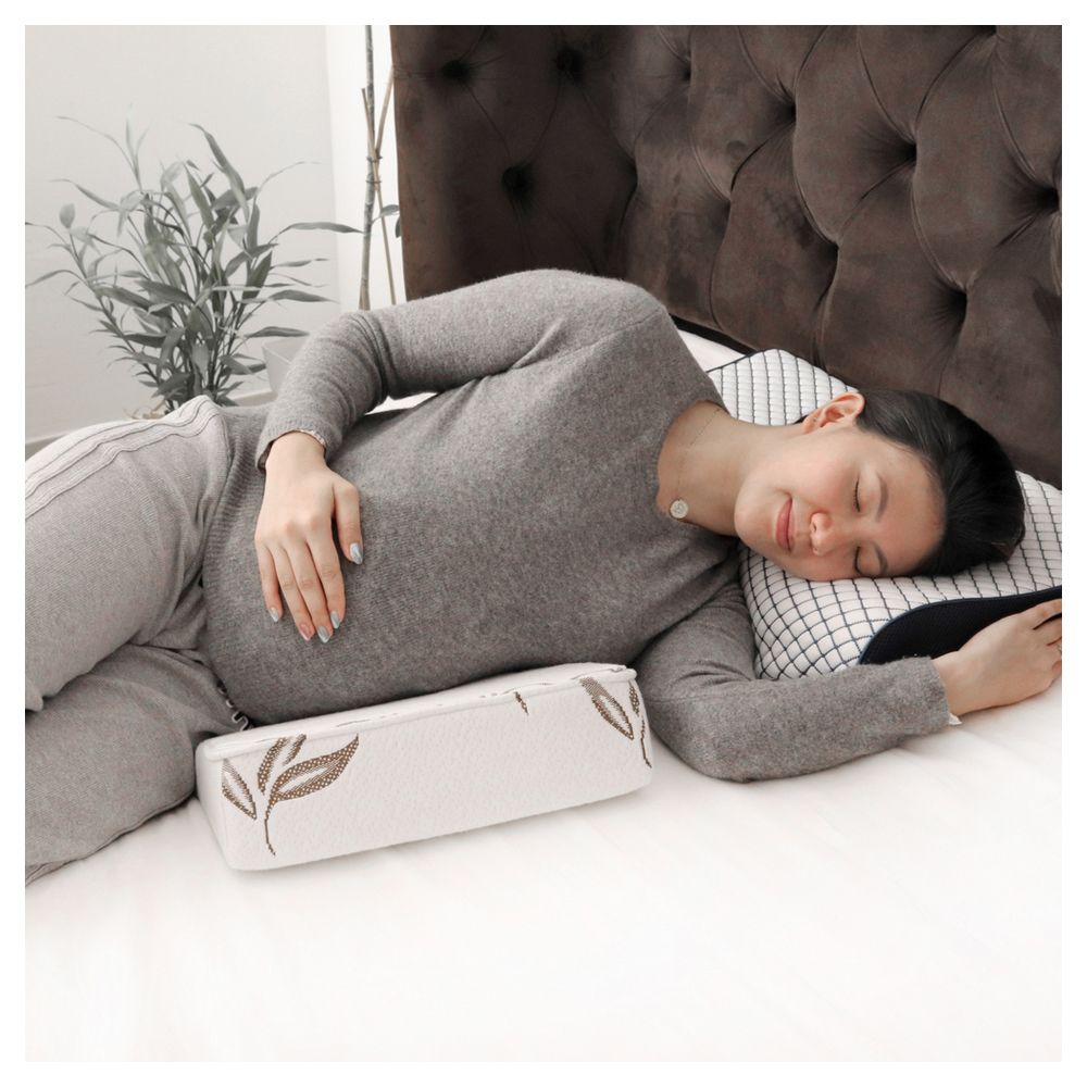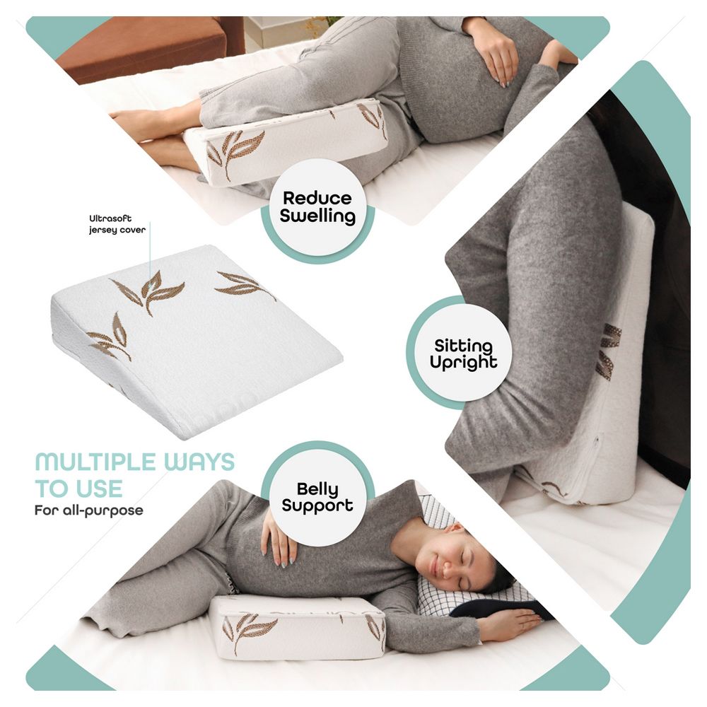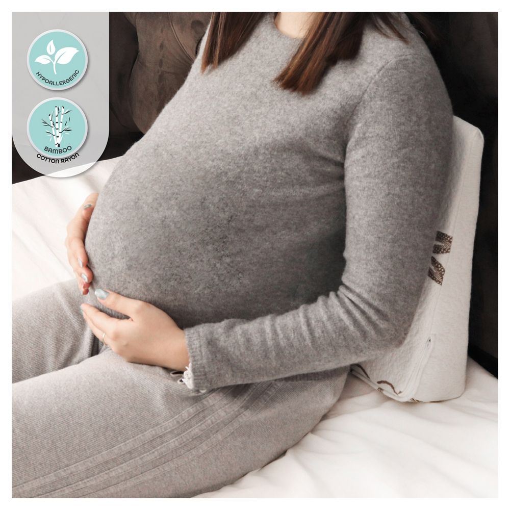 The Moon pregnancy wedge pillow provides you the versatility that you need in order to feel comfortable while sleeping. The angled wedge can be placed under growing bellies for proper spinal alignment and comfortable side sleeping. The orthopaedic foam is more supportive than traditional wedges and comes with a hypoallergenic fitted cover that is made using rayon from bamboo fibres. This keeps the pillow soft and gentle.