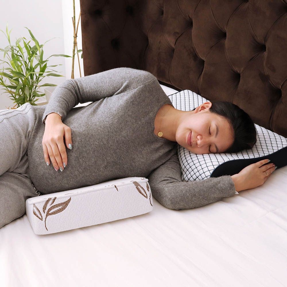 - Simple support- Moon pregnancy wedge provides simple support for your baby bump and back. It elevates your feet while resting or feeding. You can use it between your legs for aligning hips and spine. The support pillow is an adult item only and is not intended for infant's use.