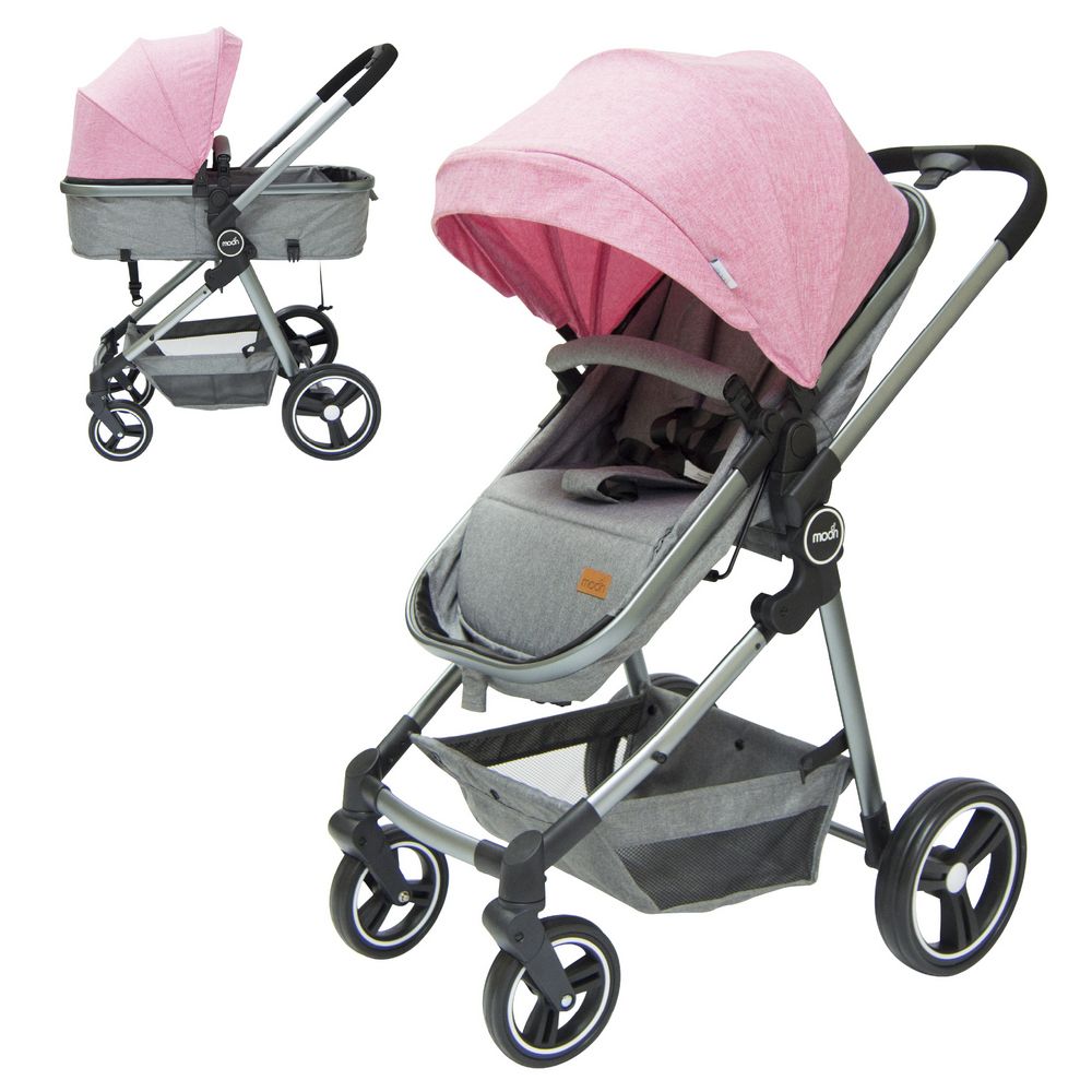 MOON Pro - 2-in-1 Stroller & Pram, A bassinet stroller is an essential piece of baby gear. The best portable bassinets provide your newborn with a comfortable, safe, flat space to nap and ride when you are on the go in the early days, up until about six months. This specific intention led to the creation of the MOON Pro baby pram stroller bassinet. The Pro baby stroller 0-3 years has pretty much everything a baby and parent needs, in the lightest most compact configuration. It also includes a convenient reversible feature so you can rotate your little one towards to you when they are small. The Pro bassinet with wheels is the ultimate-comfort newborn baby item featuring: , Convertible to cradle/ bassinet in minutes , Reversible seat from forward to rear , Lightweight aluminum frame and premium fabric , Toe tapping rear wheel lock, 360 swivel front wheels , One-hand multiple reclining seat , 5-point safety harness, bumper bar , A large seat area and storage basket , Suitable for Birth to 3yrs (0 to 15kg) , Available in blue, grey, pink, and dark grey A Considerate Present , Share this baby pram stroller bassinet with all the new parents around you. It will make a great gift for the adorable little ones around you and the infant parents who are always on the go!