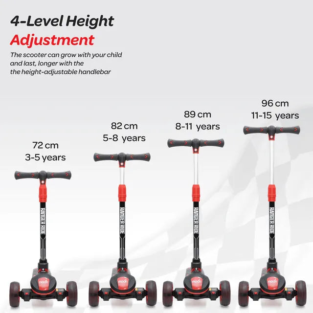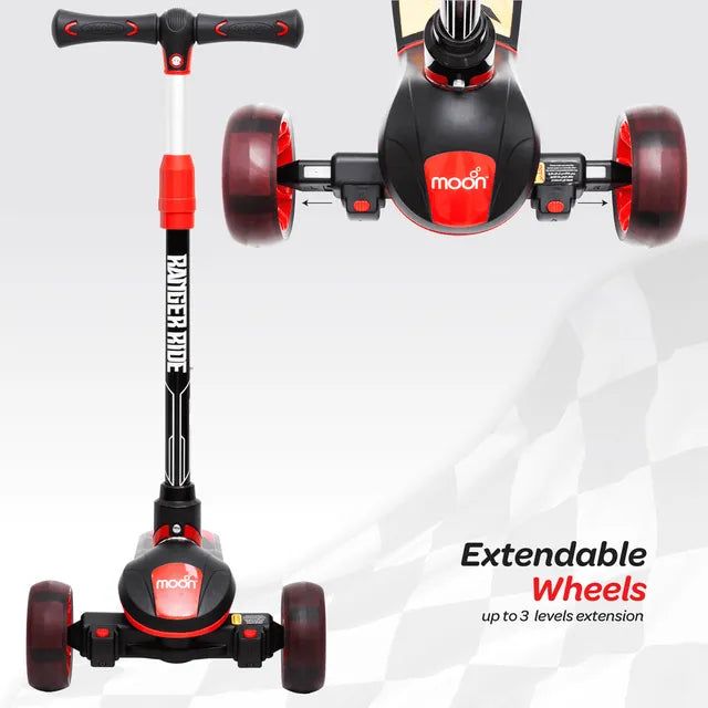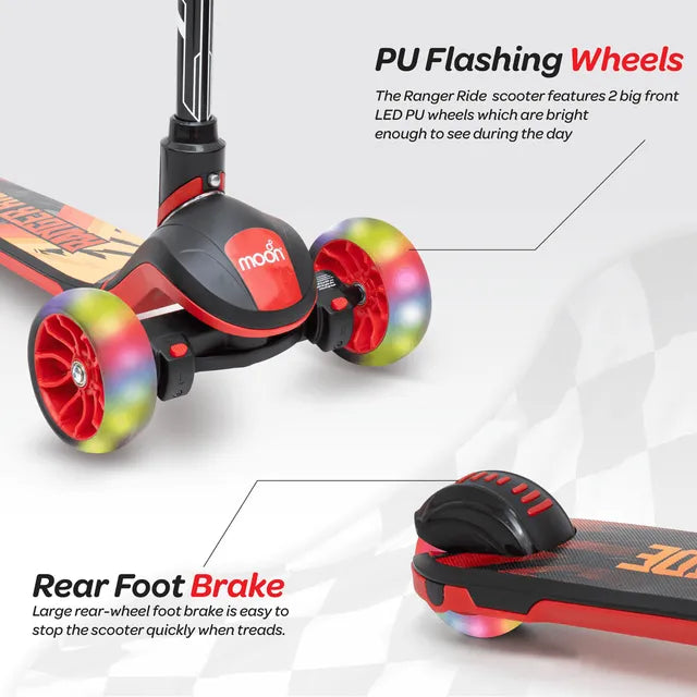 - Grow-With-Me Design: The Moon ranger ride scooter features a 4-level adjustable handlebar ranging from 72cm to 96cm, making it perfect for children. Its extendable front wheels ensure stability and adaptability, growing alongside your child for years of fun.