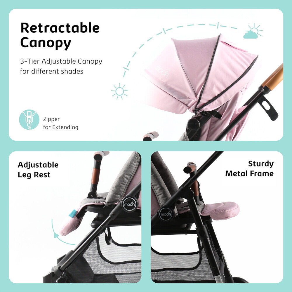 - innovative Pushchair: Forget the heavy and limited baby gear! The Moon portable, compact, foldable, and 360-degree rotatable baby trolleys are here to revolutionize your concept of walking, exploring, and bonding with your baby