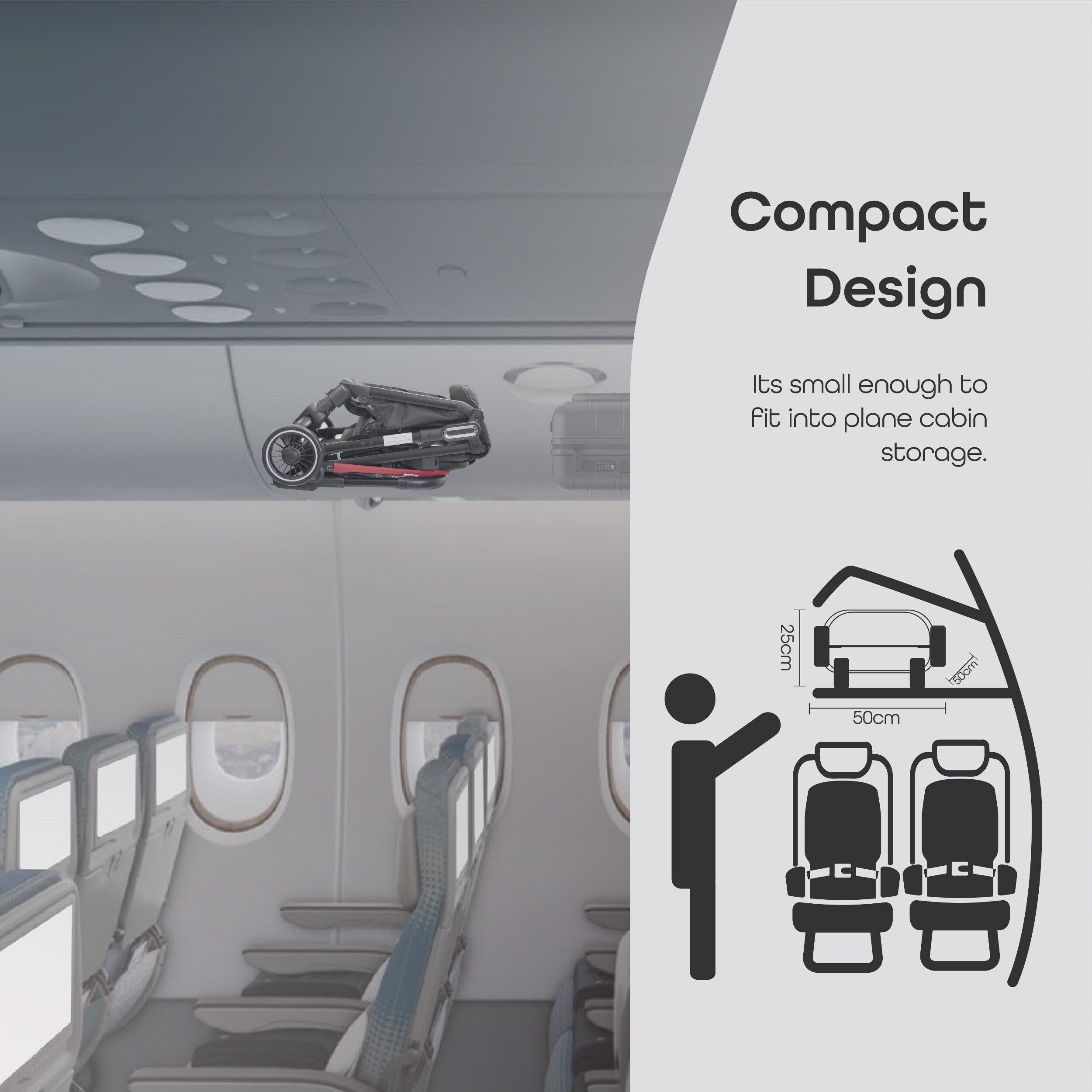 MOON Ritzi - The Airplane Friendly Stroller, Every parent can now get away without bringing along cumbersome strollers when they go on vacation! In addition to all our exclusive features, we designed the Ritzi MOON cabin stroller that can be stored in an airplane's overhead compartment in the same way as a purse or small suitcase. For parents who prefer to keep their baggage to a minimum when flying with a new born, Ritzi is a godsend.
