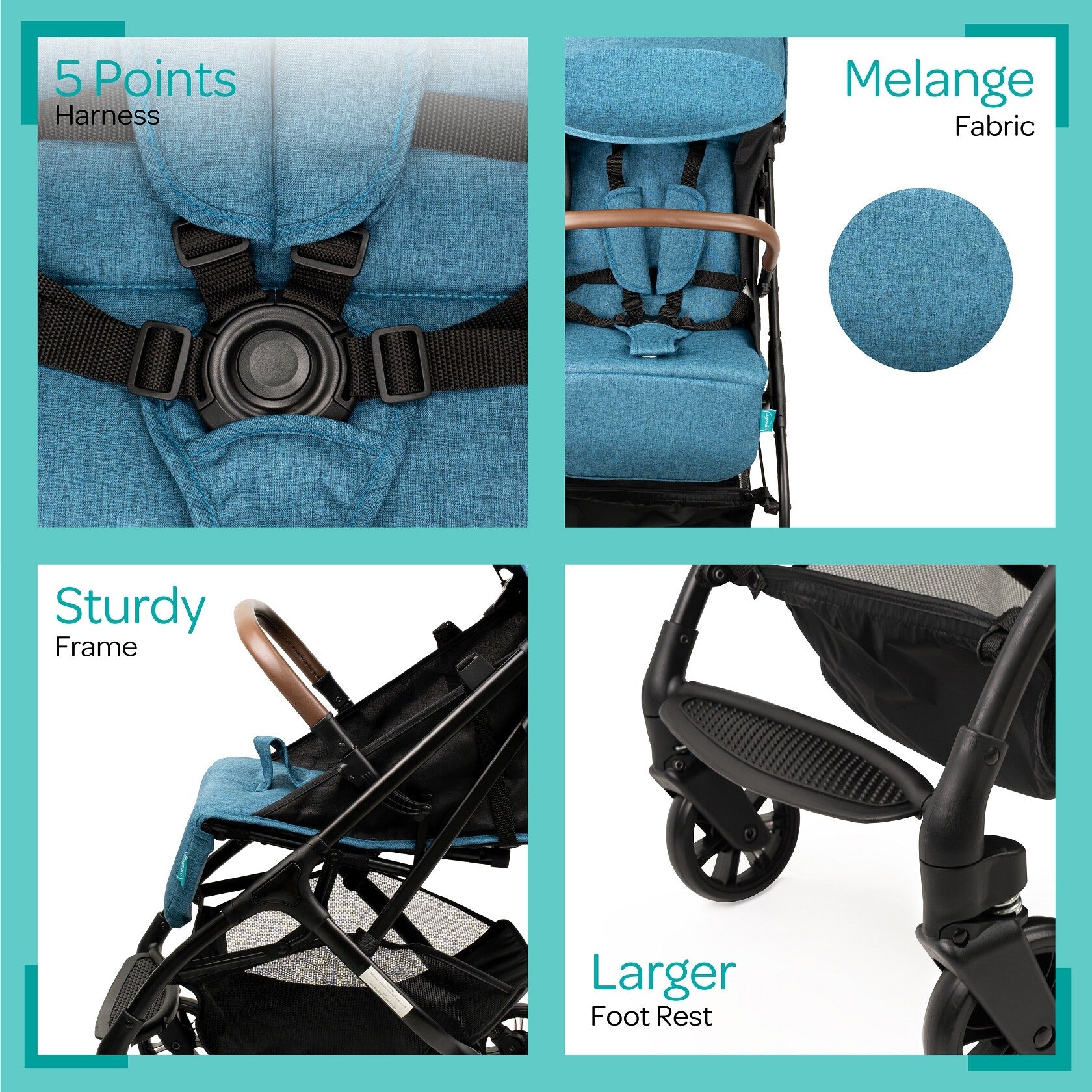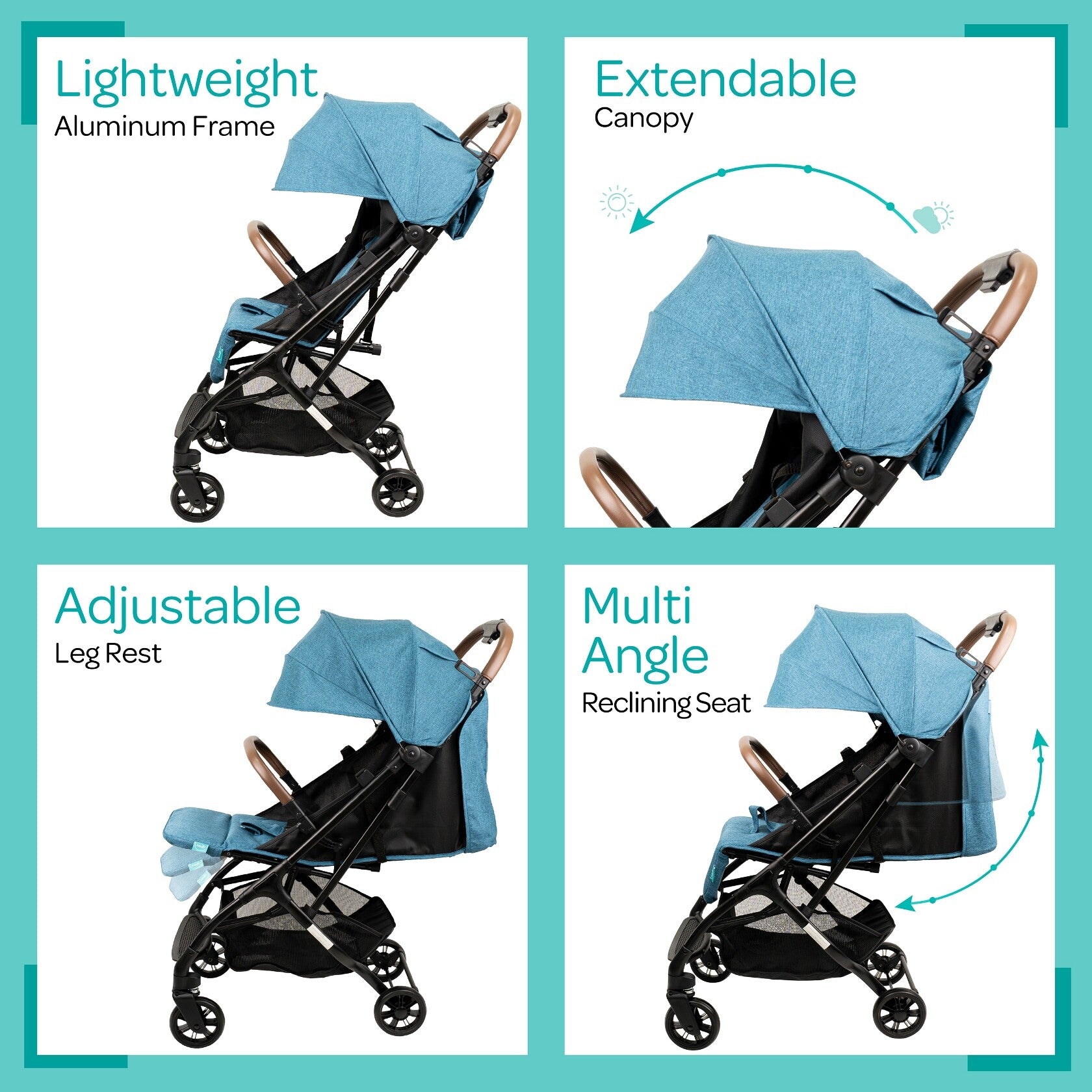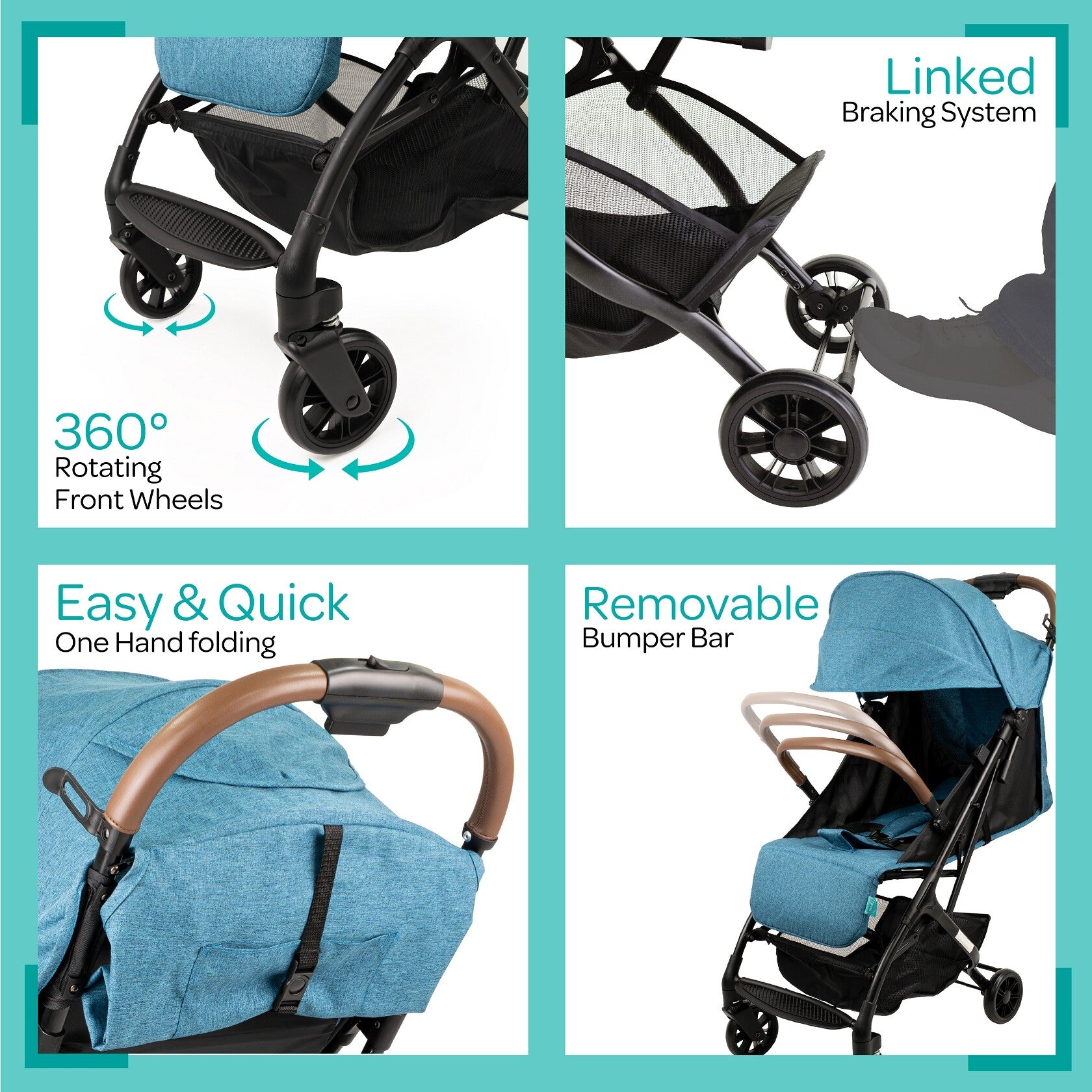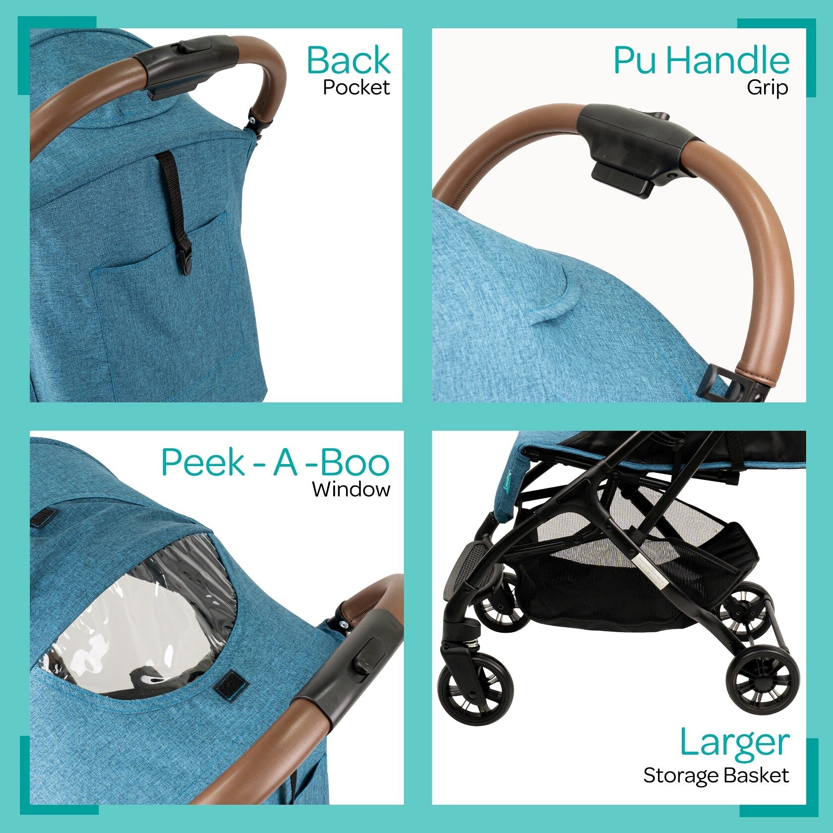- Convenient One-Handed Operation: With a single-piece eco-leather grip handle and one-handed folding mechanism, this pram is designed for effortless maneuverability. Whether you're boarding a plane or walking around town, the smooth operation allows for quick and easy use.
