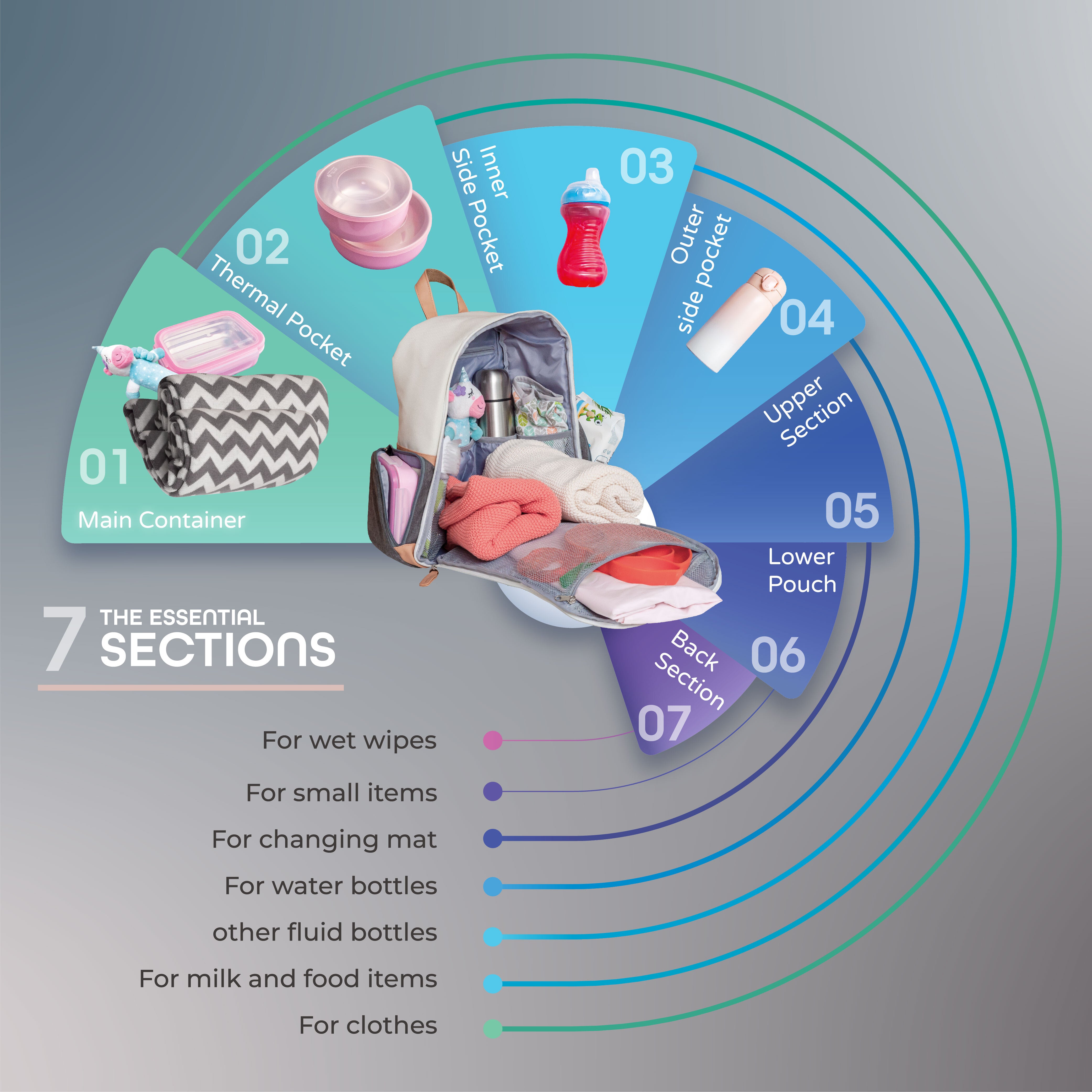 - IDEAL FOR TRAVEL- The backpack comes with various helpful travel accessories; an additional purse, a changing pad, and stroller clips. It also has a fully open front for easy organization.
