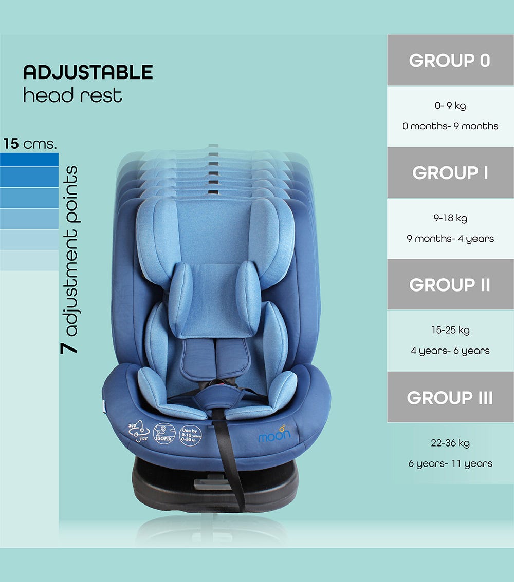 - Premium-Quality Build: Made up to the highest standards, the MOON Rover car seat for infants and toddlers is EN Certified. Its 4 recline positions (3 forward-facing and 1 rear-facing) helps keep your child comfy. The baby is secured using the seat belts already in the car