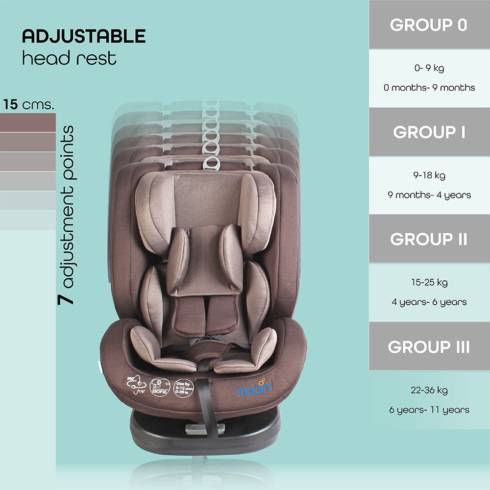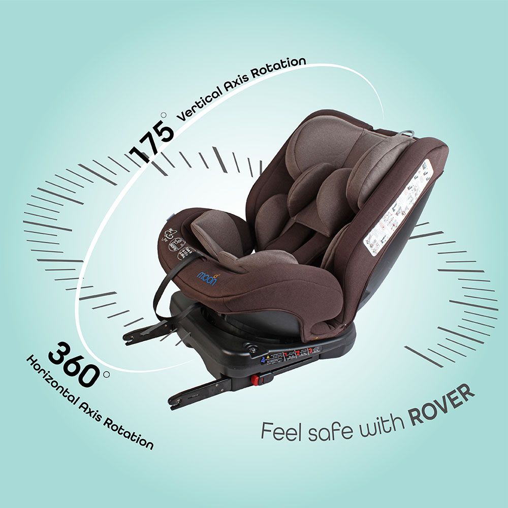 - Premium-Quality Build: Made up to the highest standards, the MOON Rover car seat for infants and toddlers is EN Certified. Its 4 recline positions (3 forward-facing and 1 rear-facing) helps keep your child comfy. The baby is secured using the seat belts already in the car
